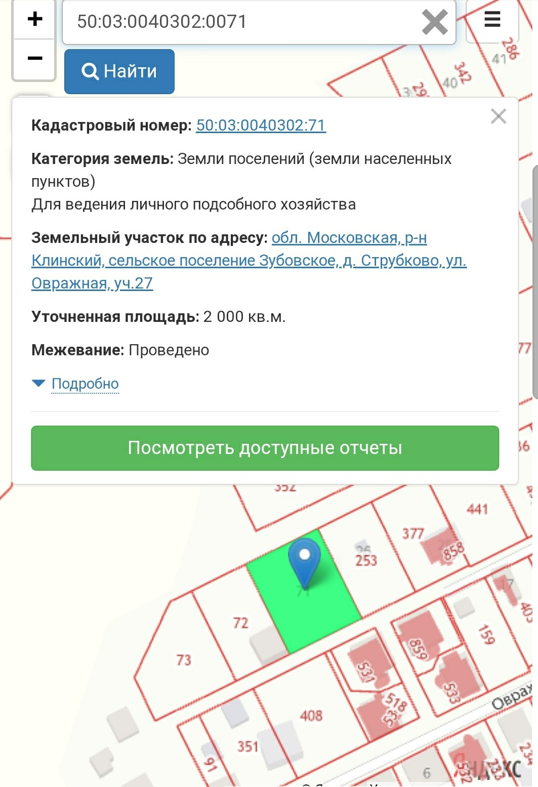 Участок под ИЖС, 20 сот. на продажу в деревне Струбково, Овражная улица