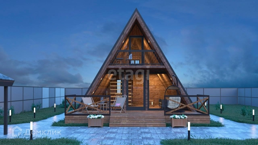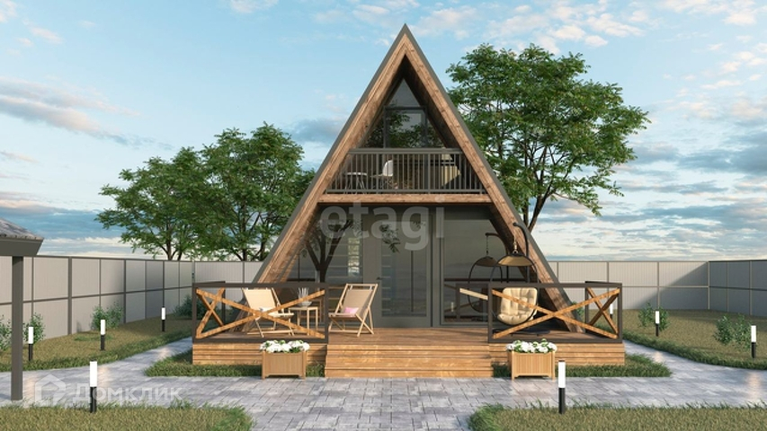 Дом выполнен в стиле A-frame - это дом, форма которого напоминает букву «А». Иначе ещё называют «дом-шалаш», «дом-палатка». Он и правда напоминает палатку, только надёжную, комфортную и со всеми удобствами.