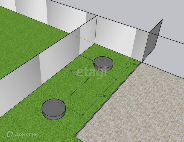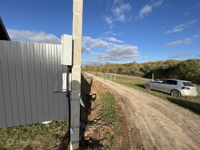 Участок огражден металлическим забором.
