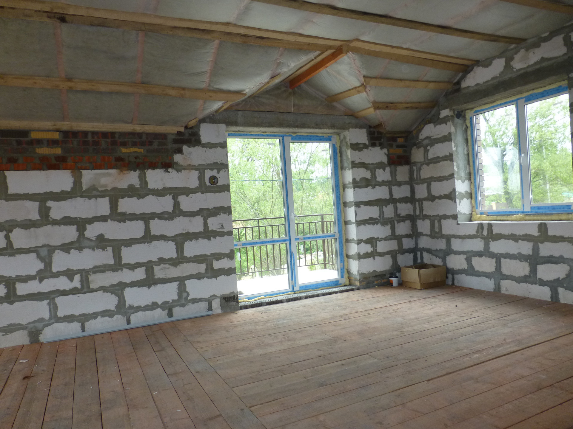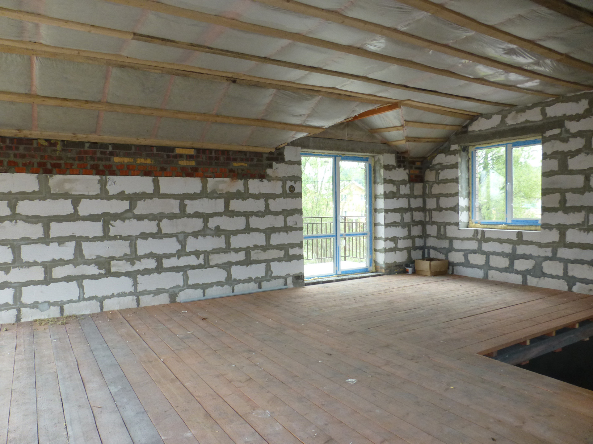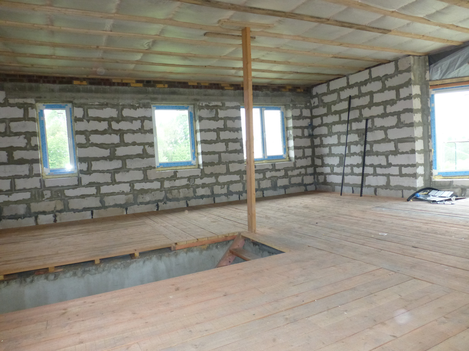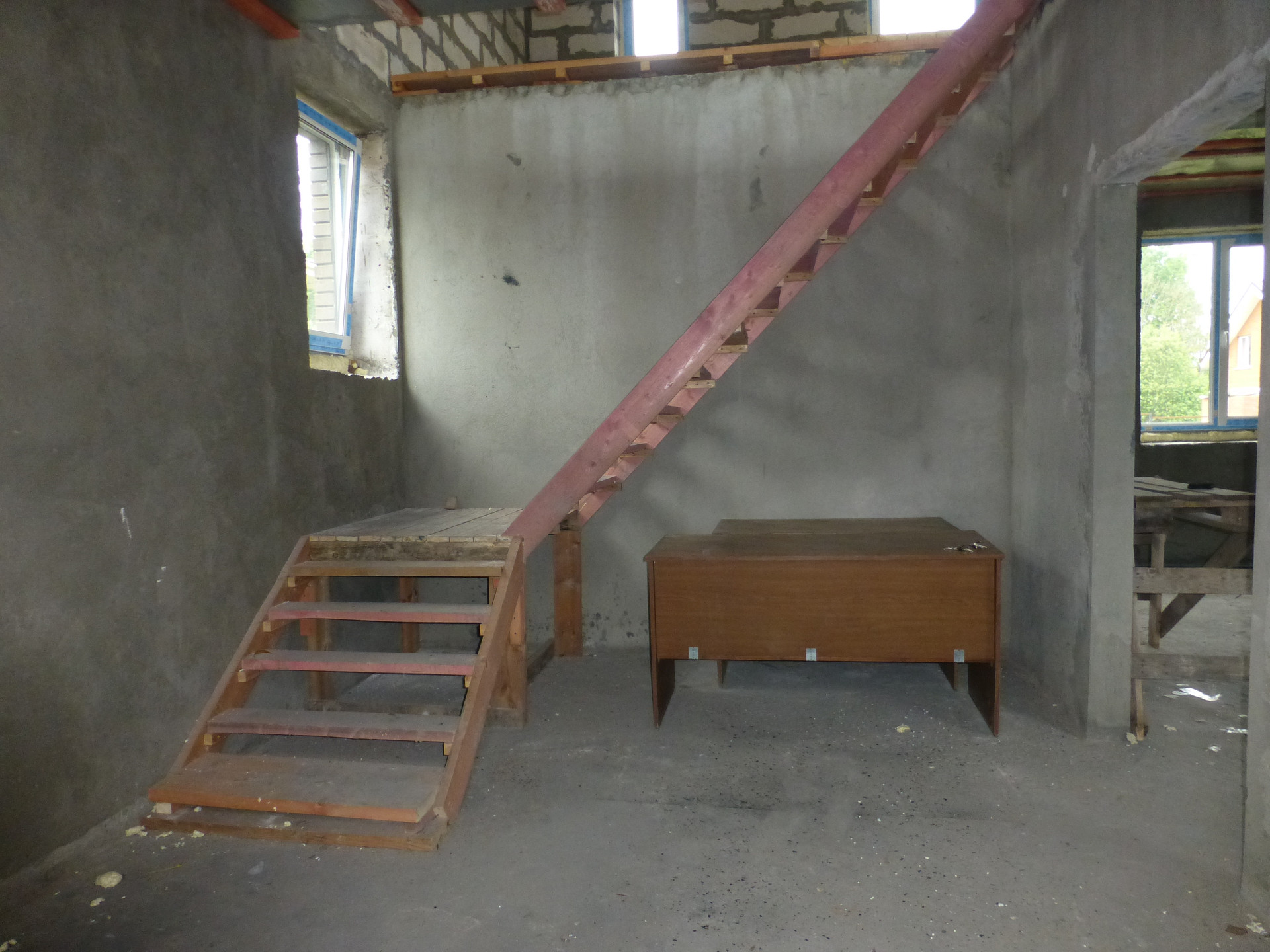 - выполнена отделка : оштукатурены стены, стяжка на полу,