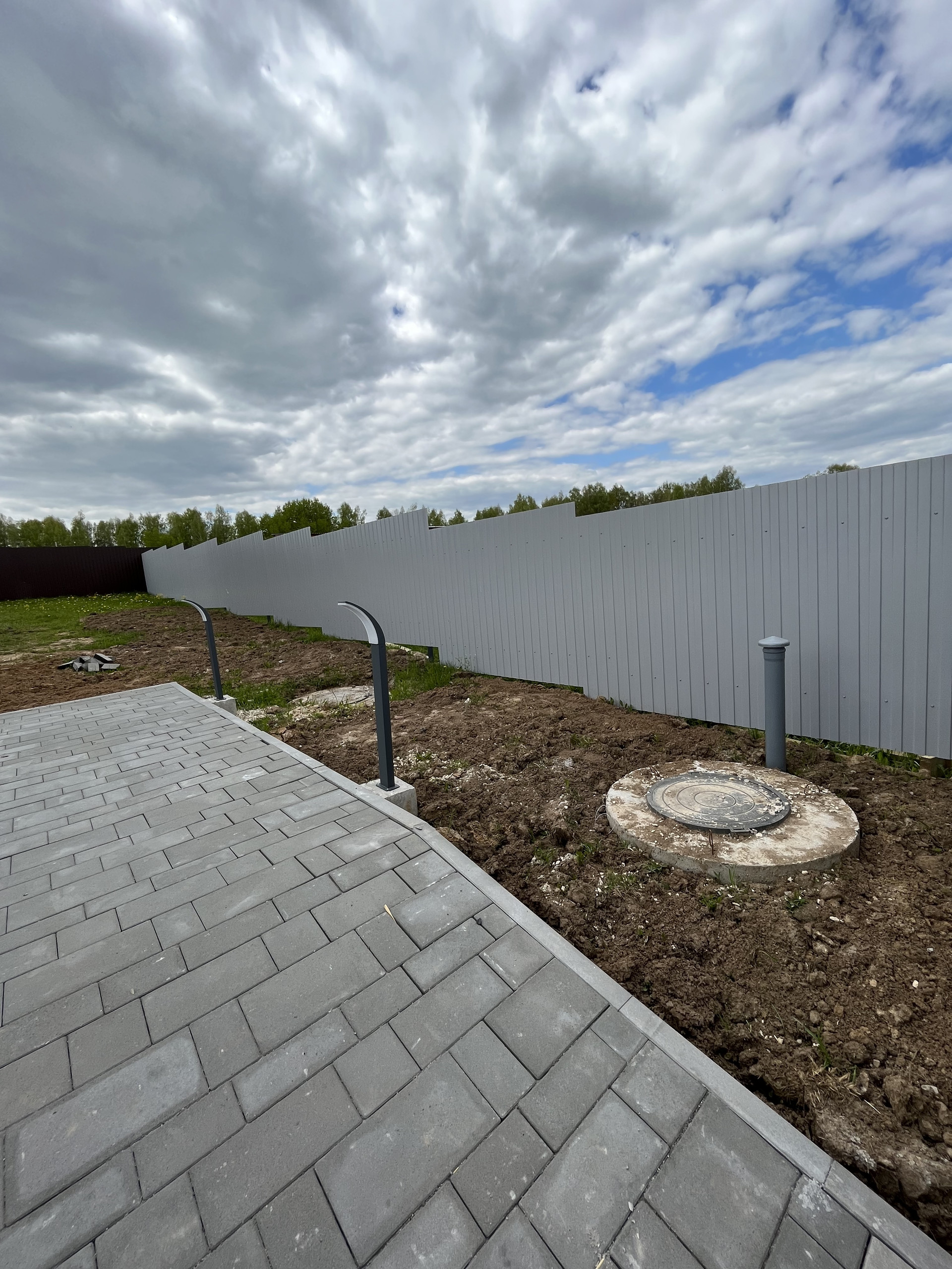 — Освещение участка декоративными фонарными столбиками