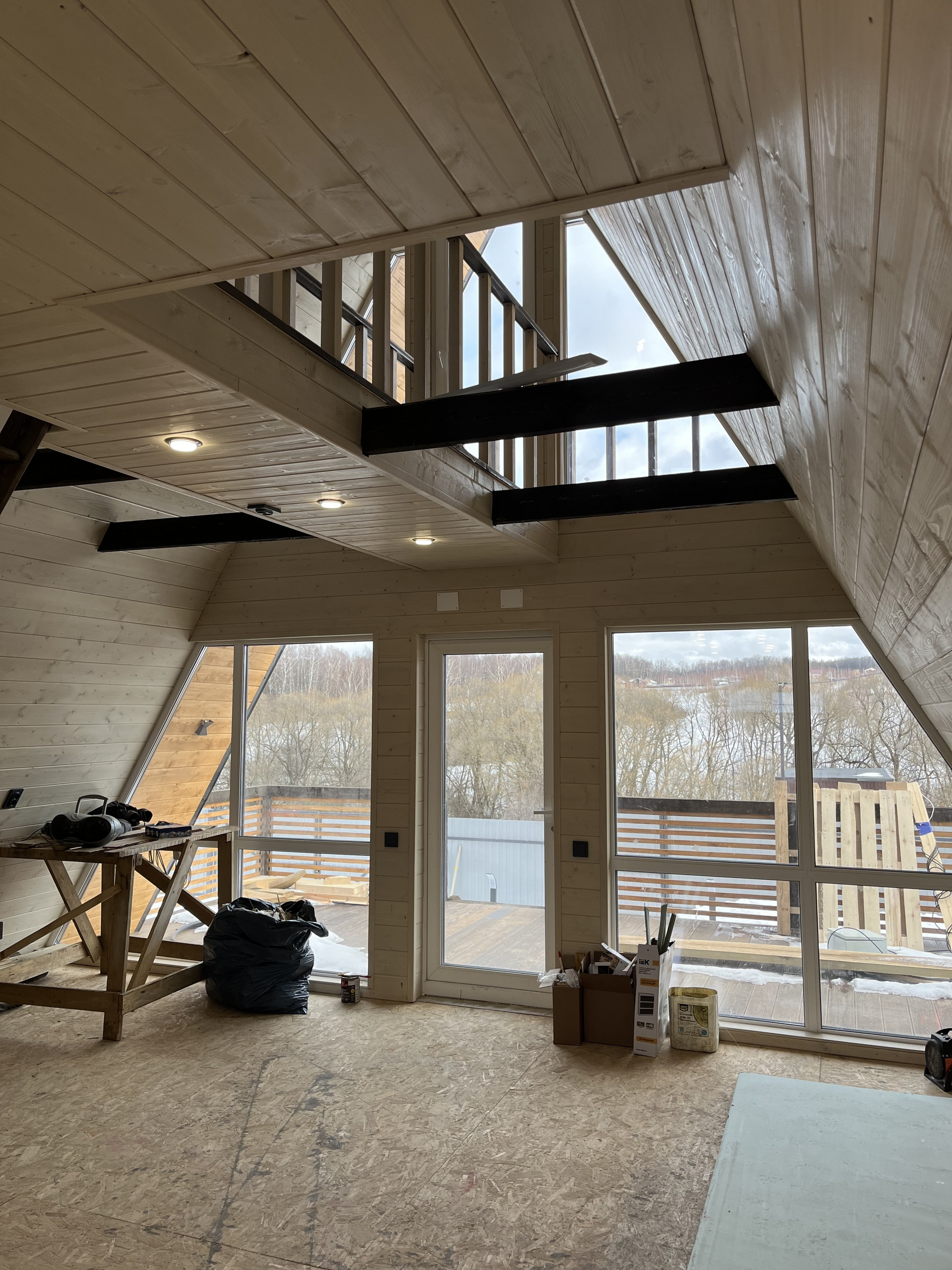 — Панорамное остекление передней части дома с освещением