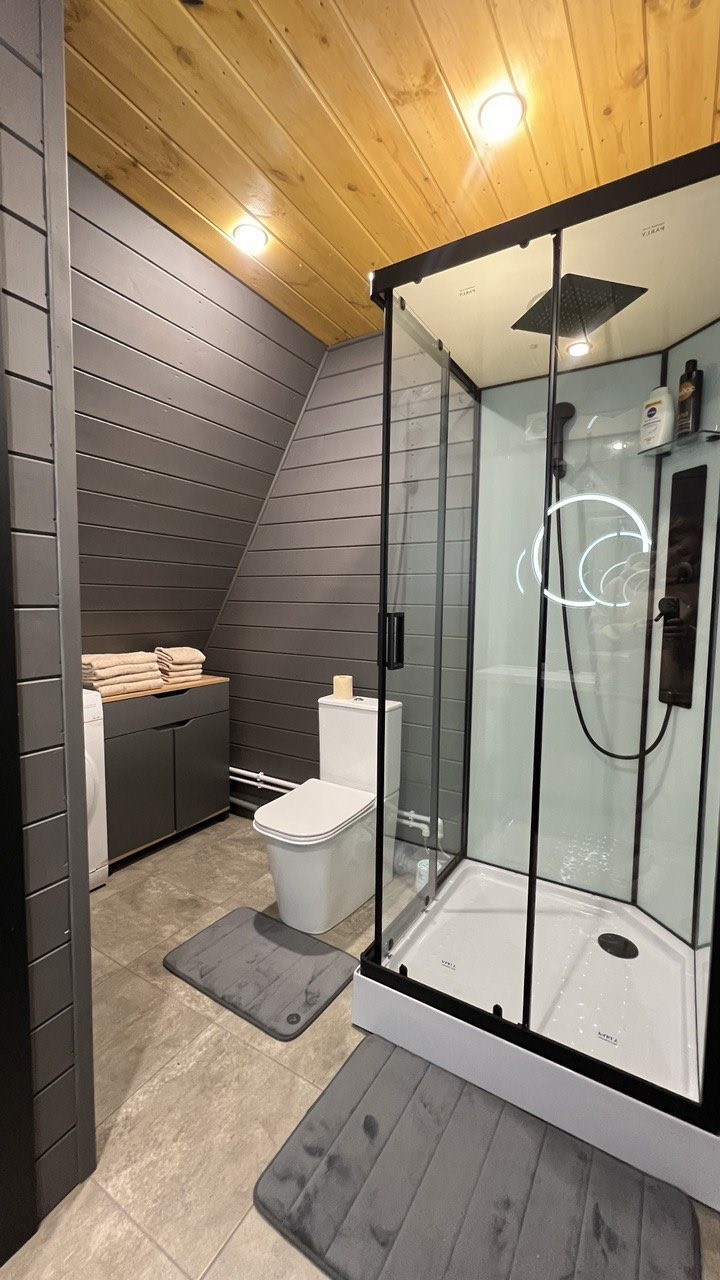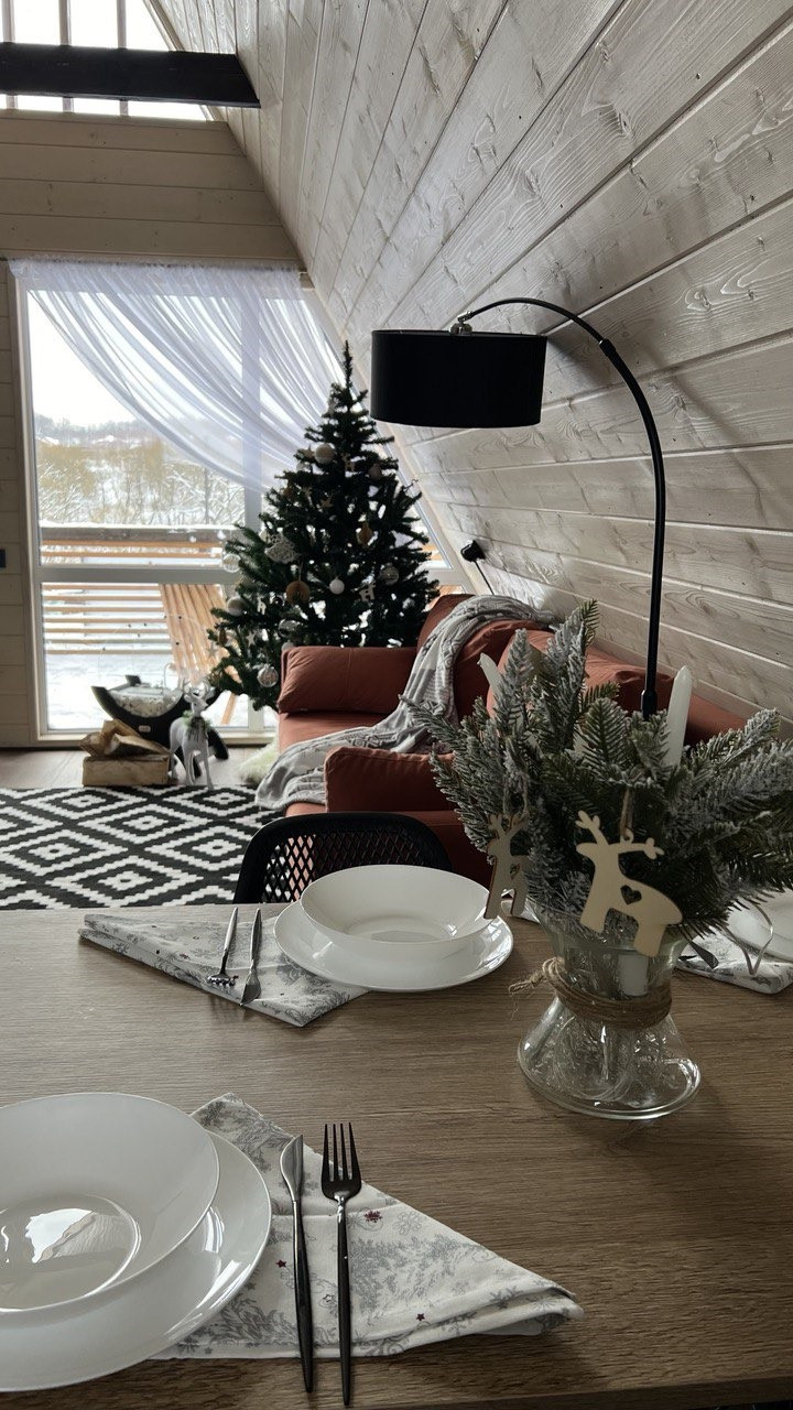 Шикарный дом с панорамным остеклением в стиле A-Frame находится в 10 минутах от города, в 25 минутах от центра в деревне Струково на самом краю с захватывающим видом на лес!
