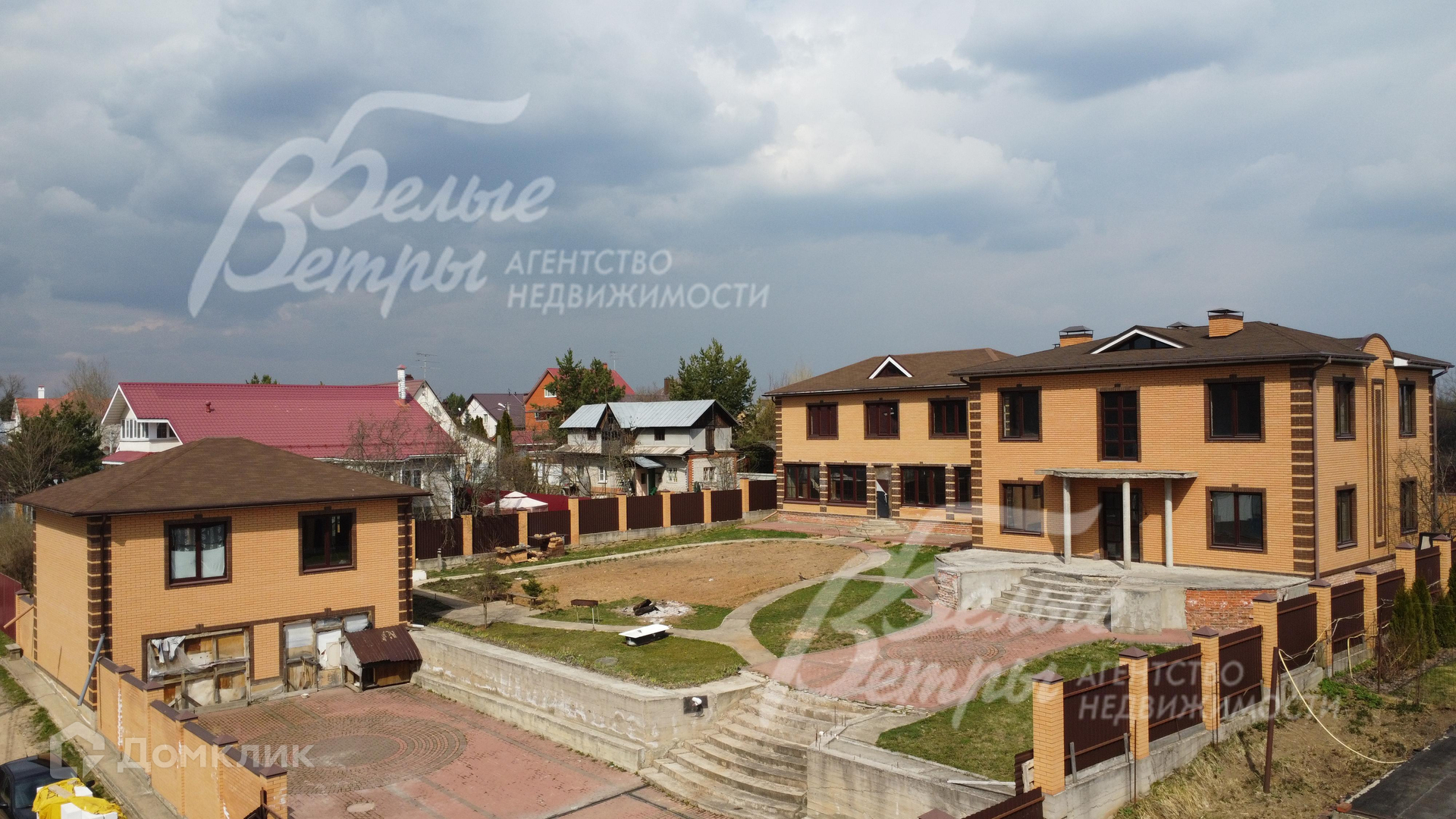 - Вспомогательный жилой дом 206.5 кв.м (зарегистрирован): 2хэтажный в стиле основного дома, также выполнен из газобетона и облицован таким же кирпичом. Под чистовую отделку. 1ый этаж: Гостиная 28кв.м , кухня 16,8кв.м, кладовая 16,7кв.м, котельная 12,4кв.м; 2ой этаж: гостиная 68кв.м, спальня-1 20кв.м, спальня-2 16,2 кв.м;