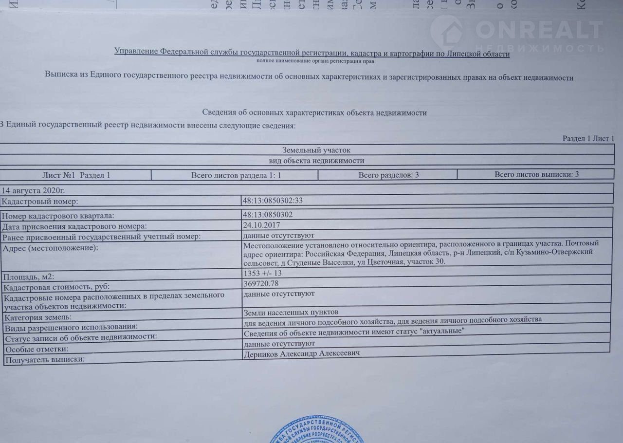 Площадь участка 1353 сот.