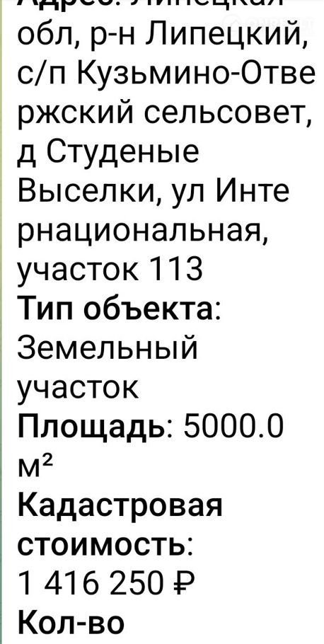 Участок под ИЖС, 50 сот. на продажу в деревне Студёные Выселки, Интернациональная улица