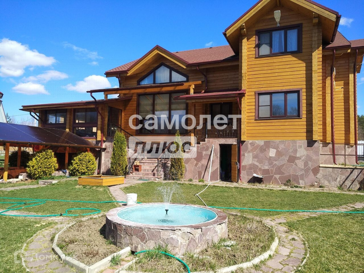 На территории участка фонтан и укомплектованный бассейн 5,5 м.*10,5 м, комфортабельная беседка с встроенной кухней и зоной для барбекю.