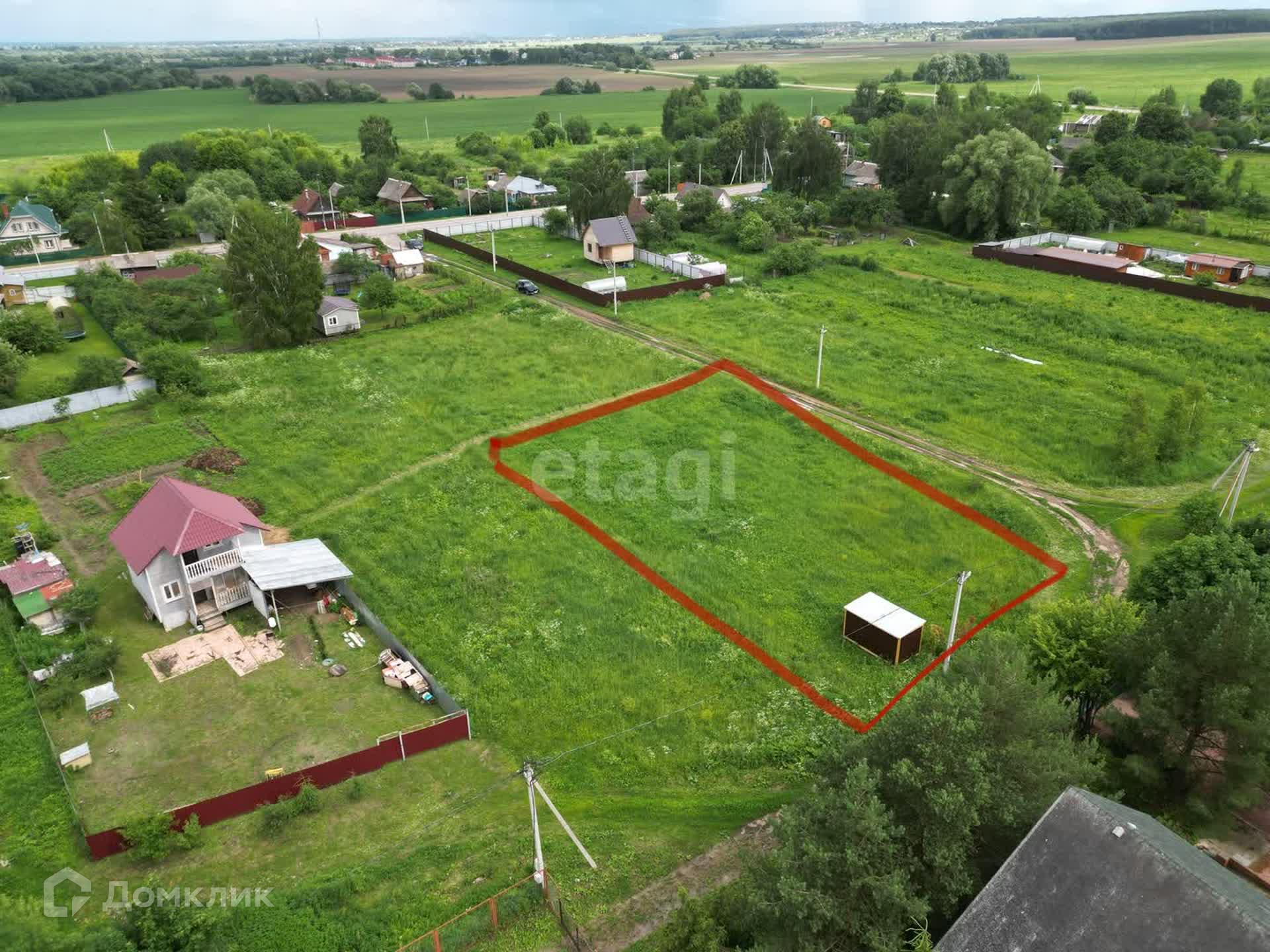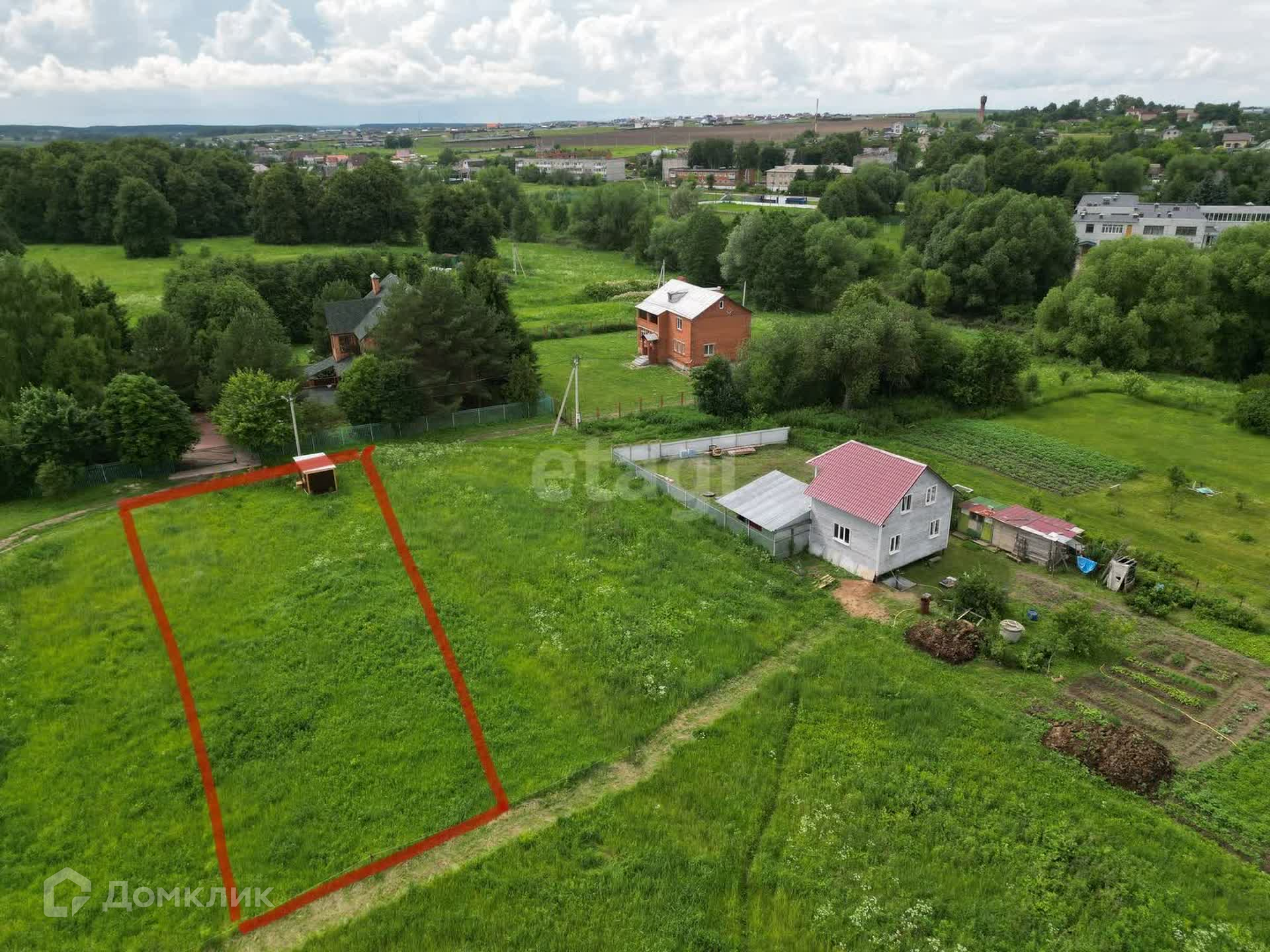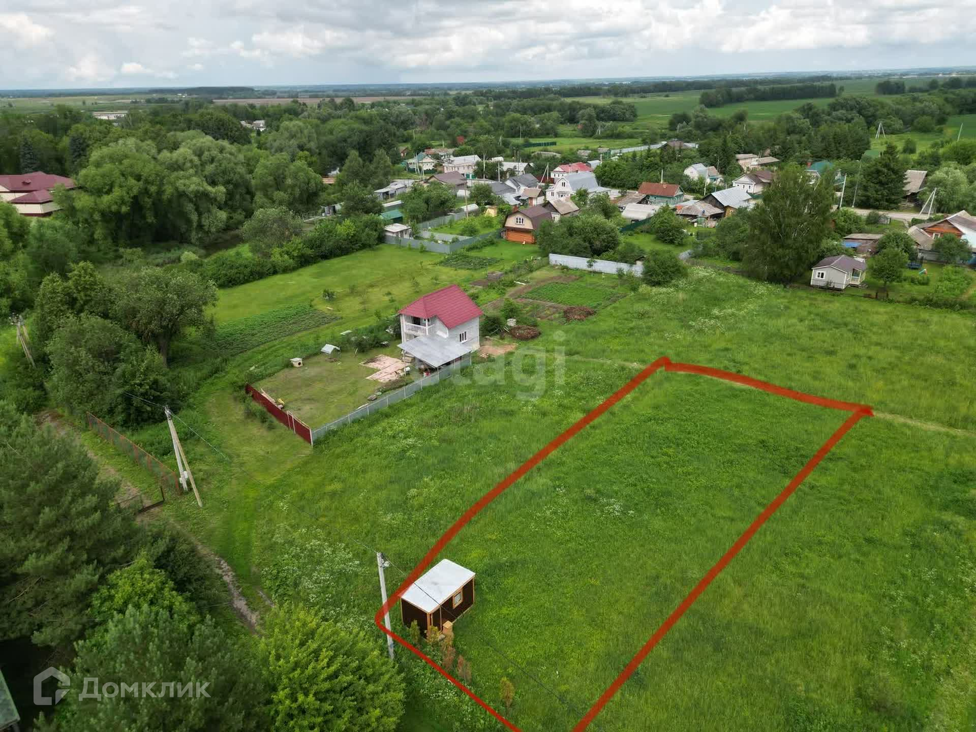 На участке стоит новая бытовка. Элeктpичеcтвo 15 кВт по грaницe. Очень удобное расположение рядом школа, магазины.