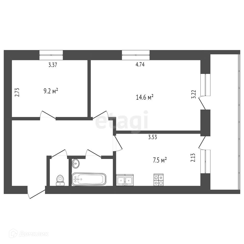 Балкон, лоджия 1 балкон