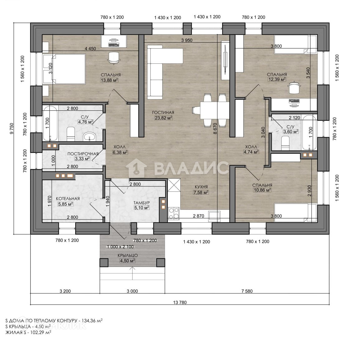 Общая площадь 134 м2