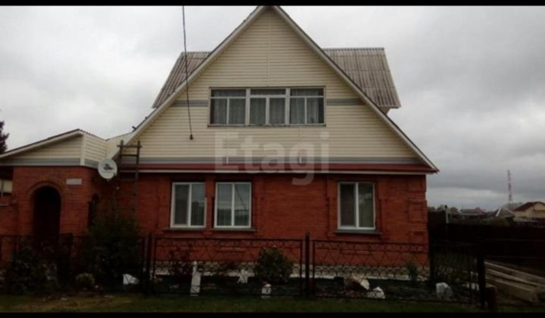Дом из бруса, облицовка-кирпич и сайдинг. Пять комнат и кухня. Окна пластиковые, выходят на солнечную сторону.