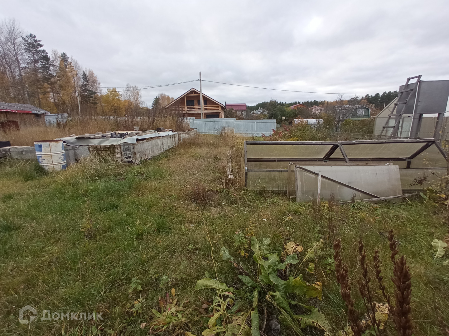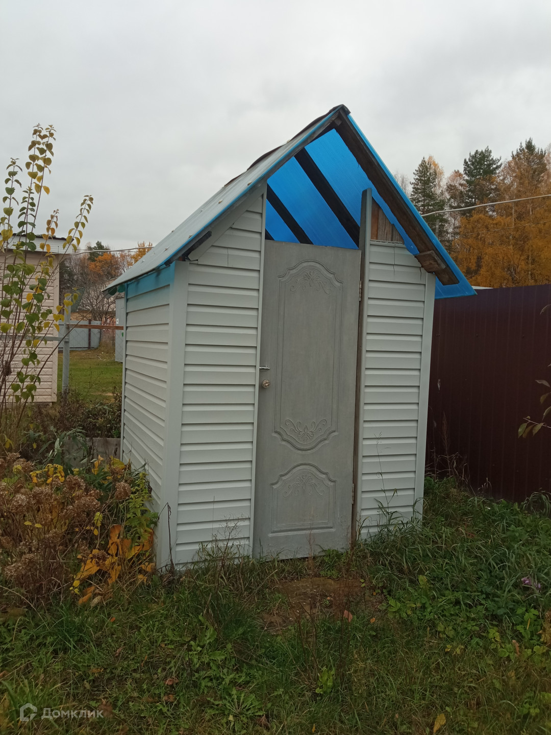 Участок огорожен забором со всех сторон( профлистом и сеткой рабицей), до реки - 2 мин. ходьбы.