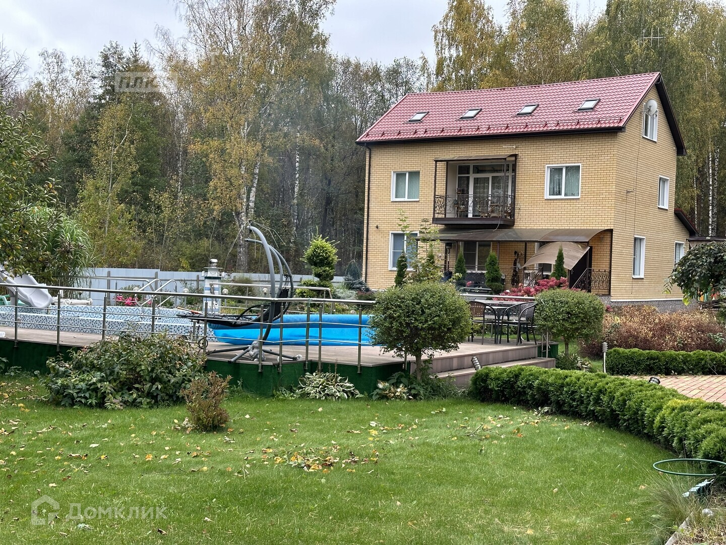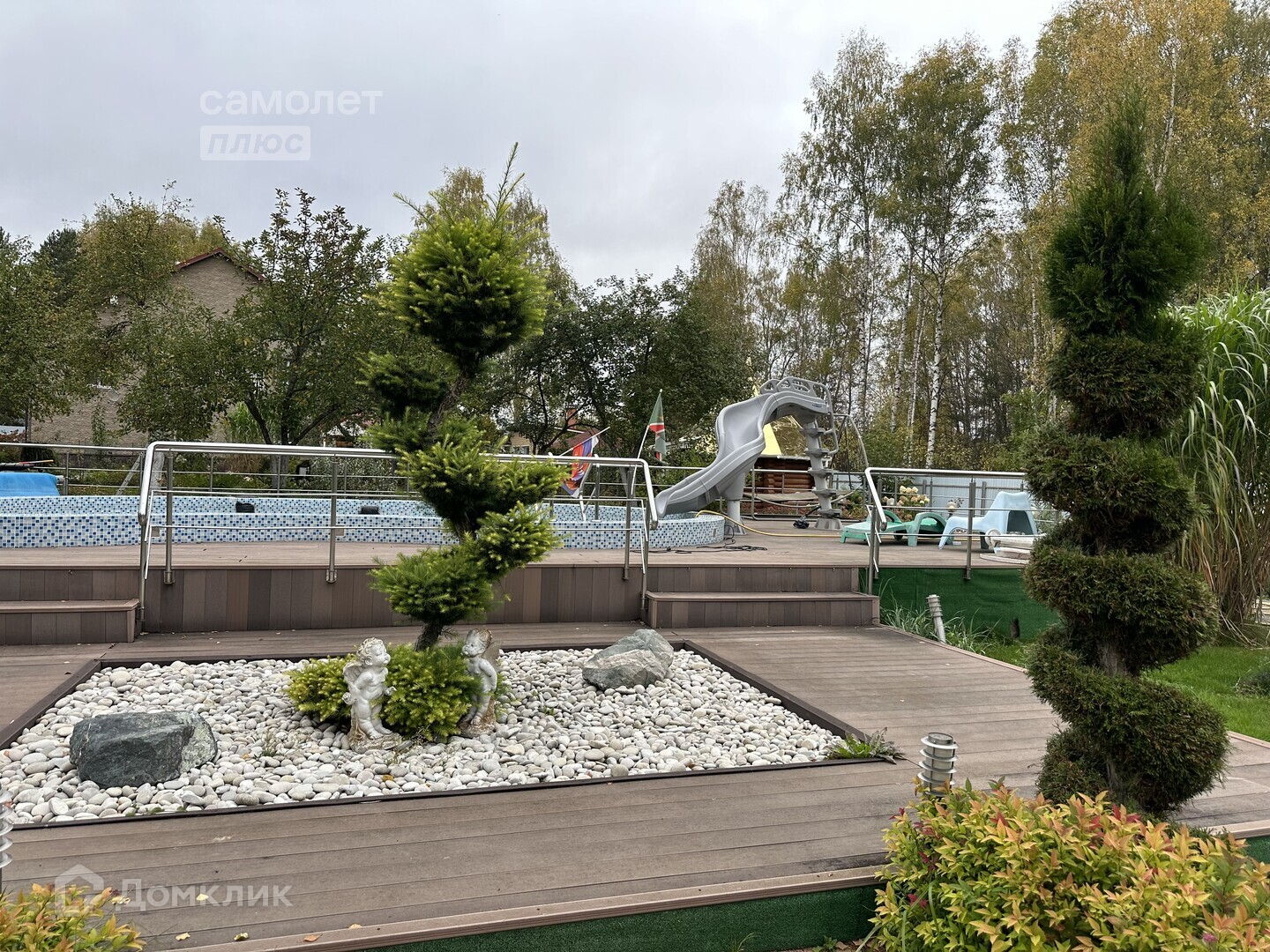 открытый бассейн с горкой и системой очистки;