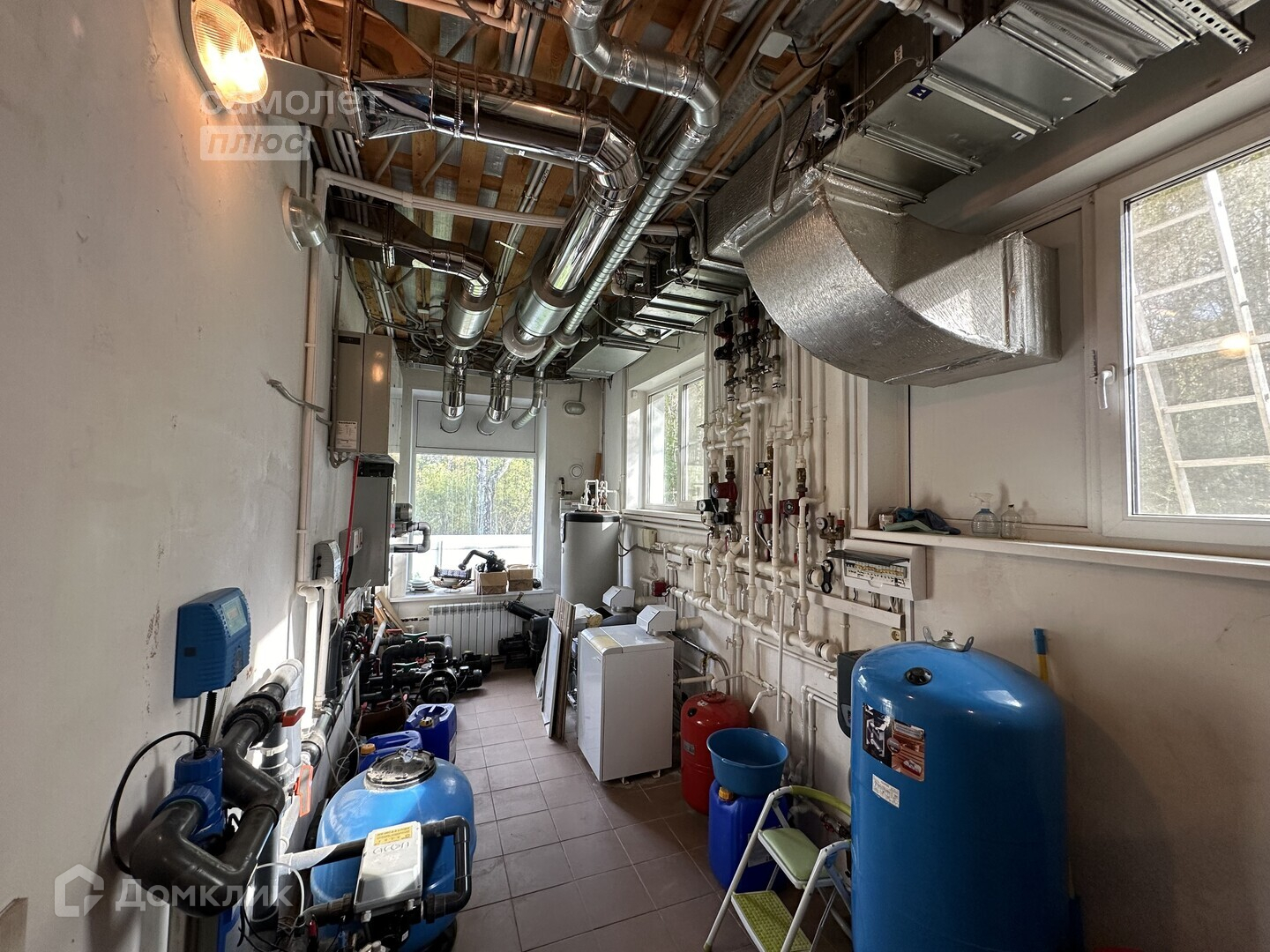 Котельная, 2 газовых котла, 2 собственные скважины (глубина 80 метров), дизельная генераторная на случай отключения электроэнергии, автоматическая поливочная система, видеонаблюдение и охранная сигнализация.