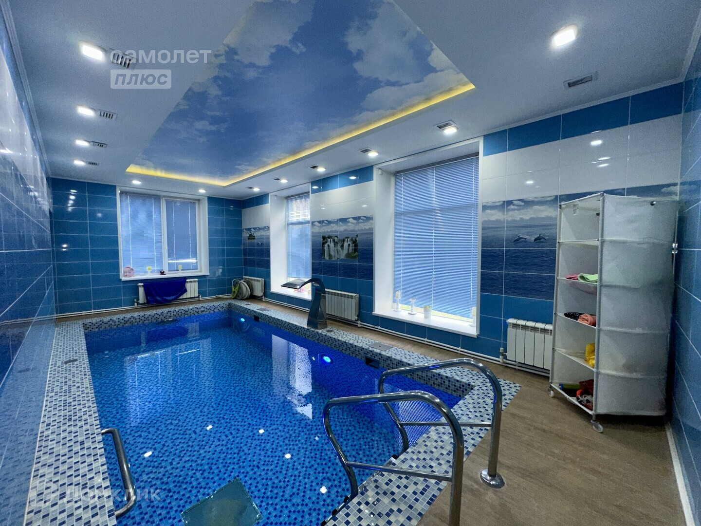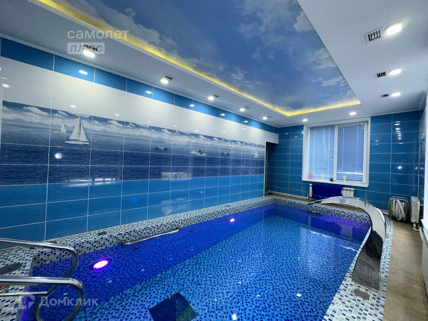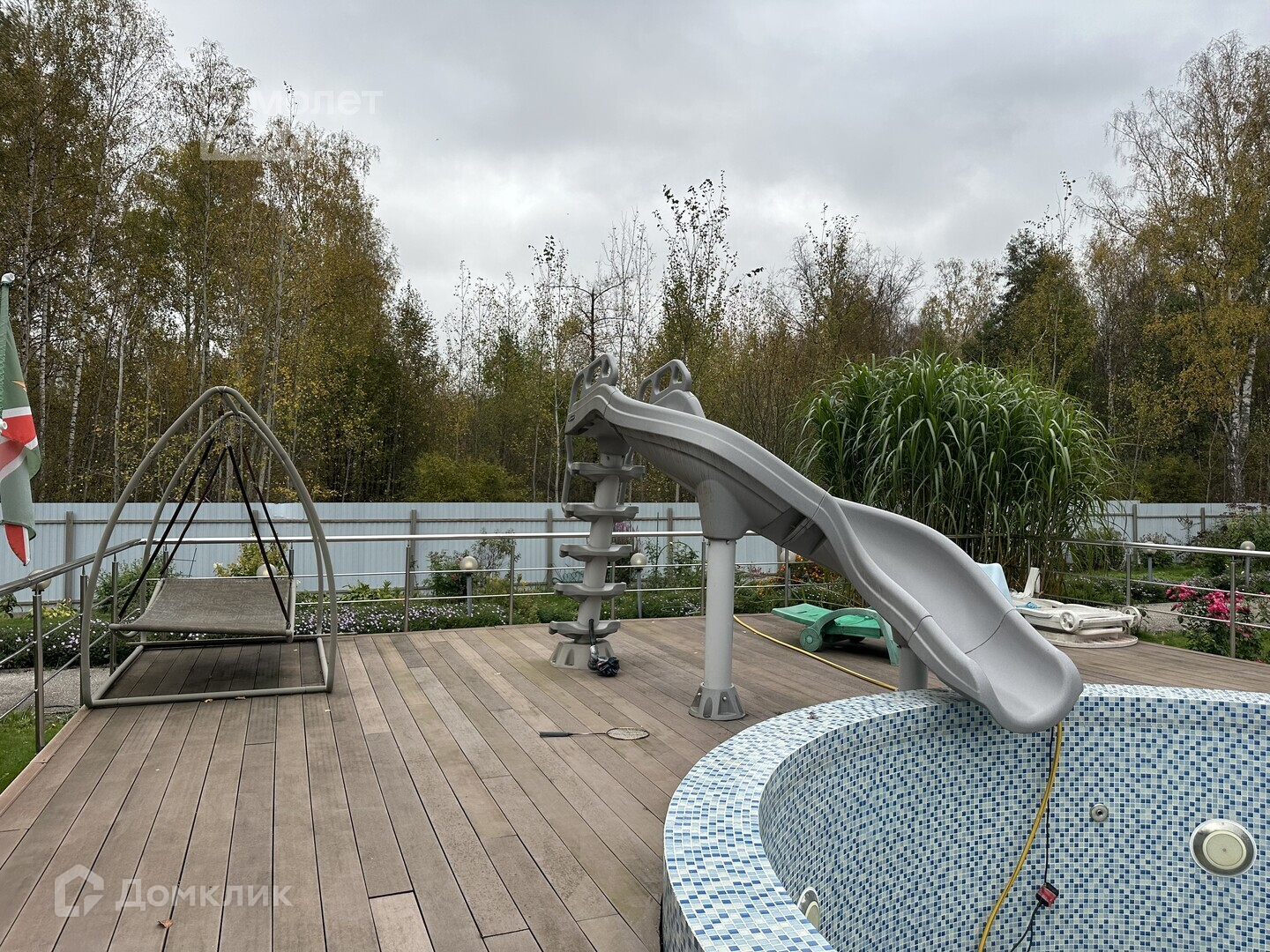 открытый бассейн с горкой и системой очистки;