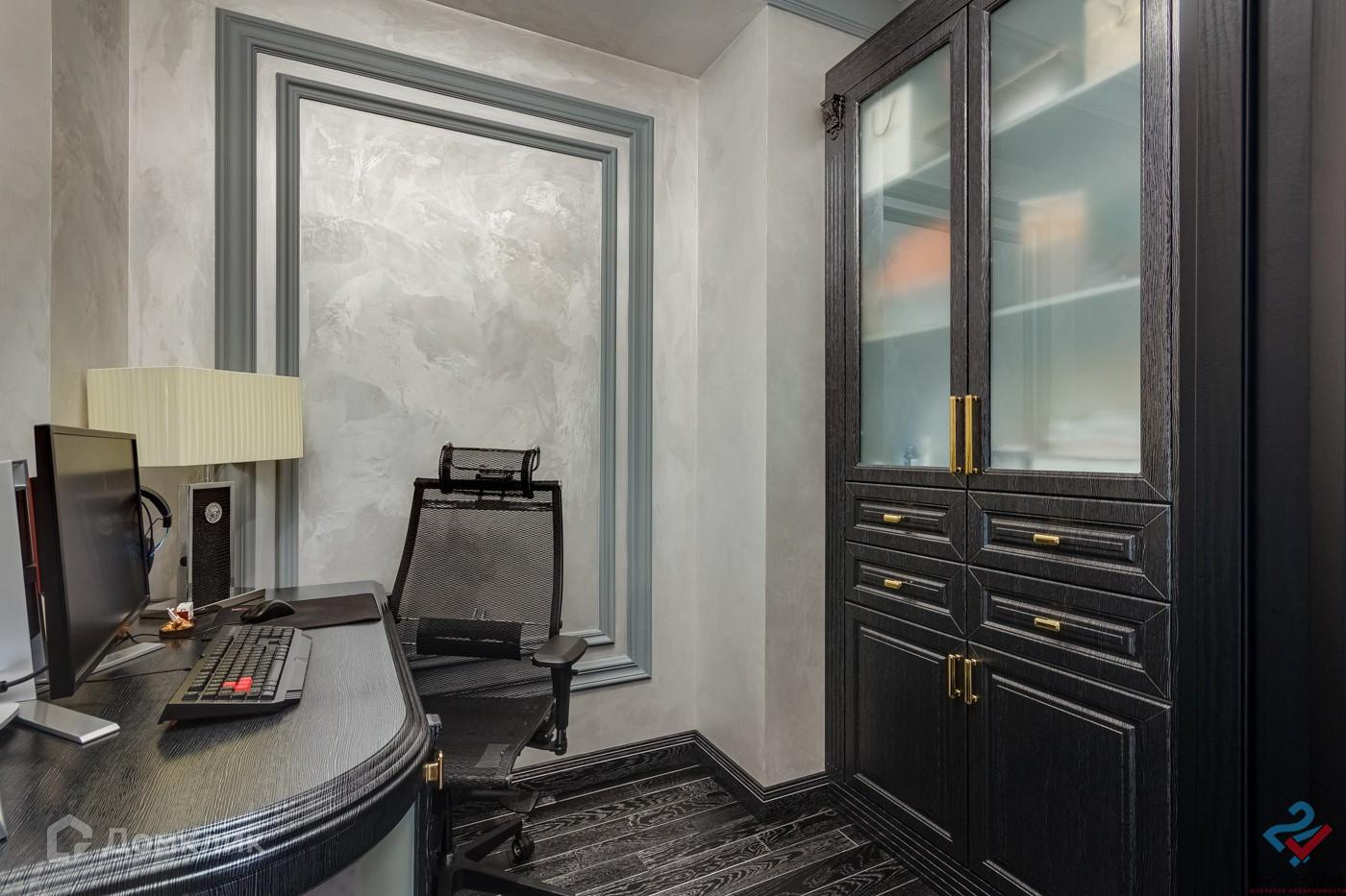 Сам таунхаус выполнен в стиле ар деко с элементами классики, в отделке использованы материалы премиального сегмента: американский орех, черный дуб, латунь, входные и межкомнатные двери из массива, кухня массив Италия, лестница массив, панорамное остекление первого этажа – массив, обои США и Италия, бытовая техника SMEG, освещение индивидуальной сборки Bohemia Glass. Вся встроенная мебель по индивидуальным эскизам, душевые - специальный заказ, сантехническое оснащение Bohemia, Cezares, Vegas Glass, Caprigo, Tessoro.