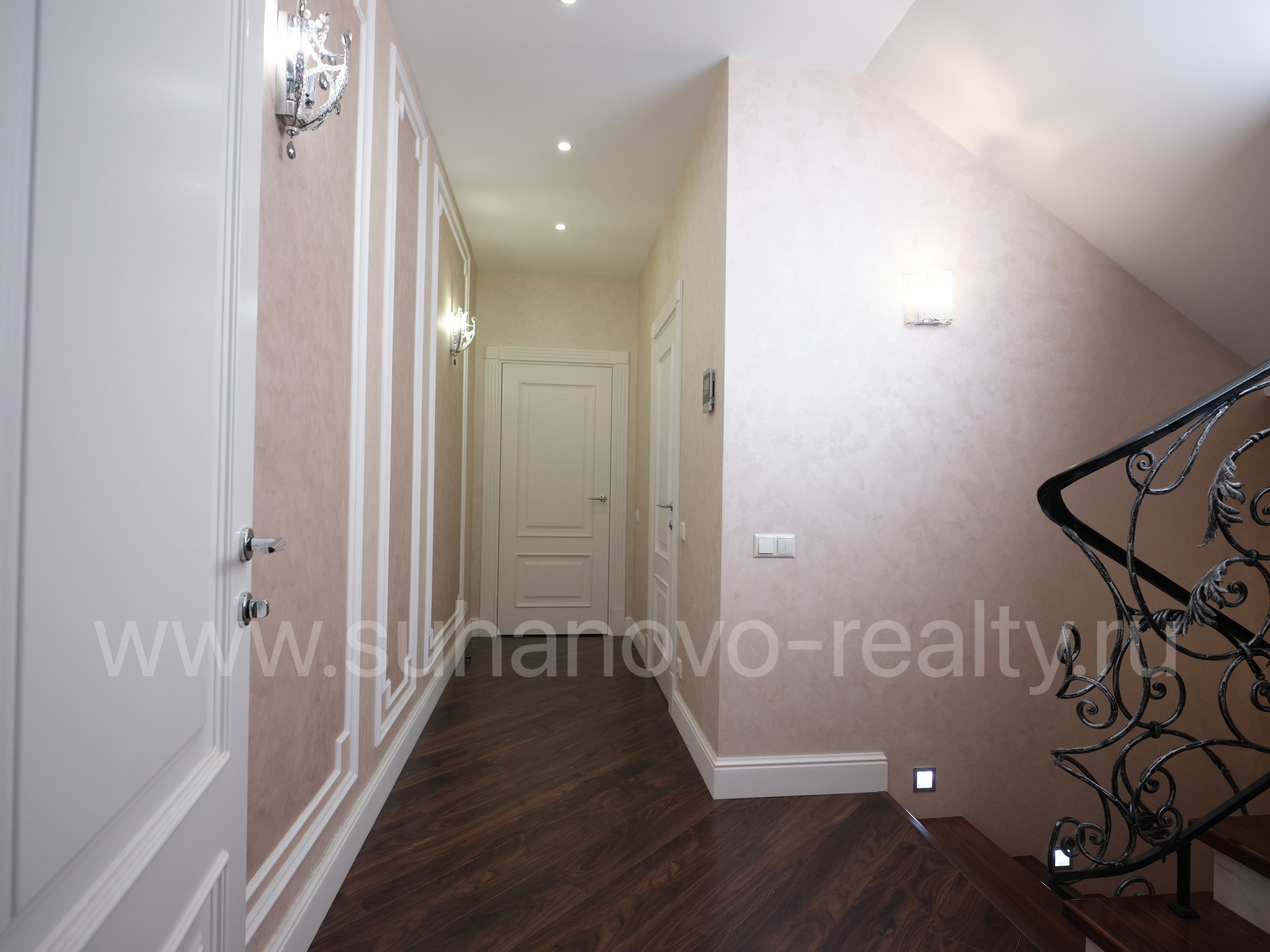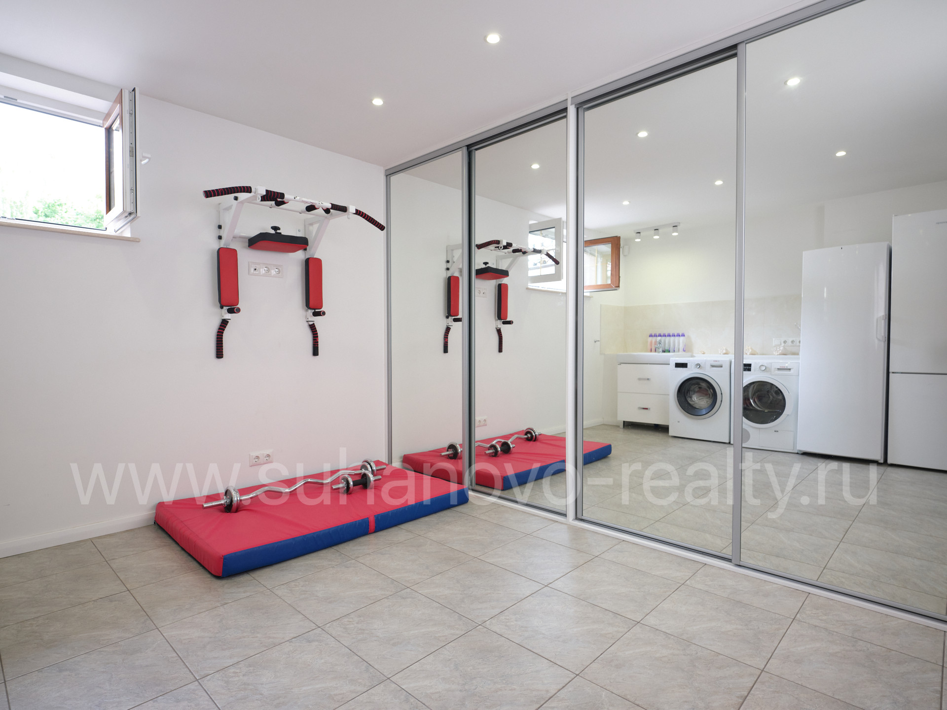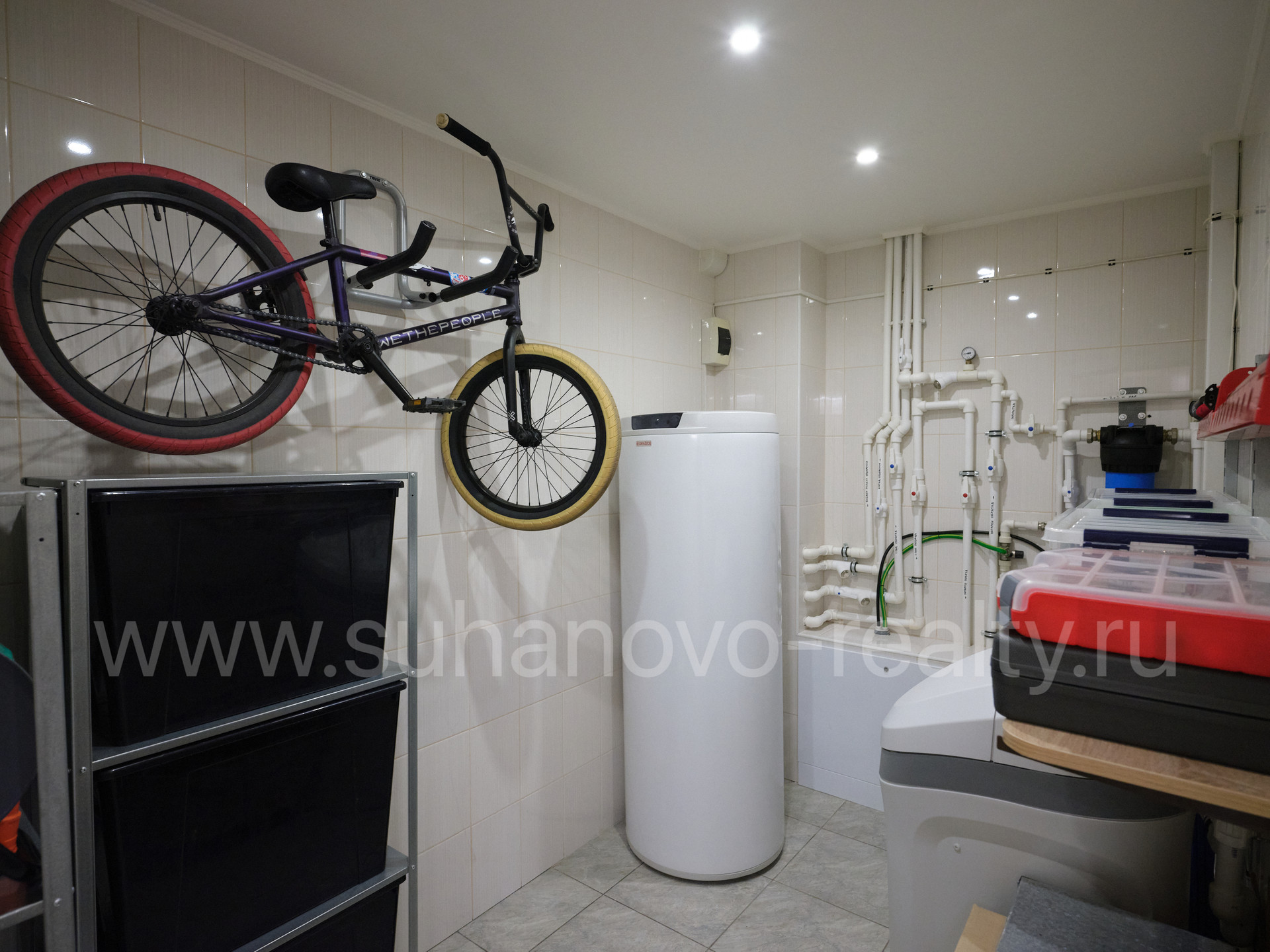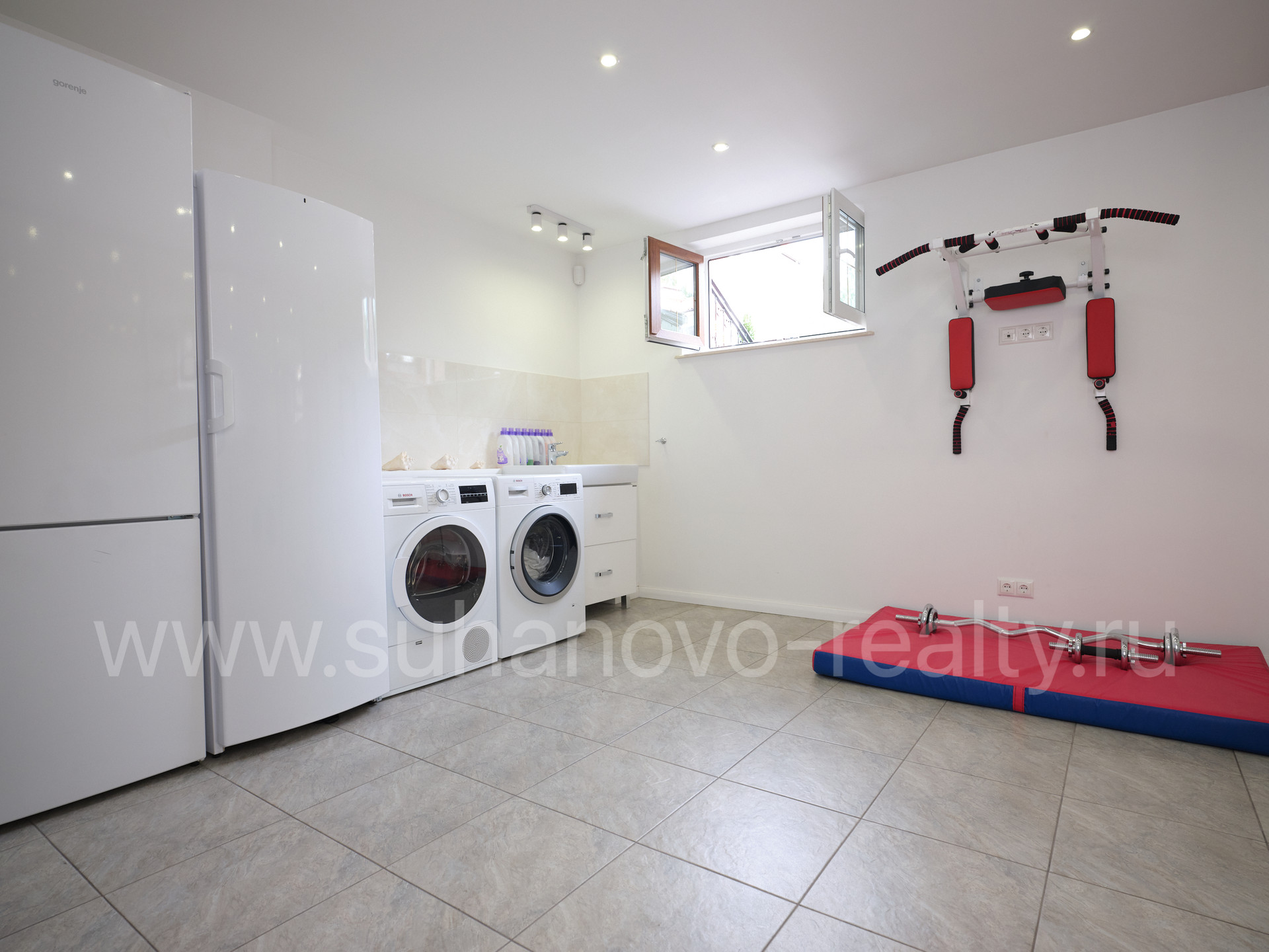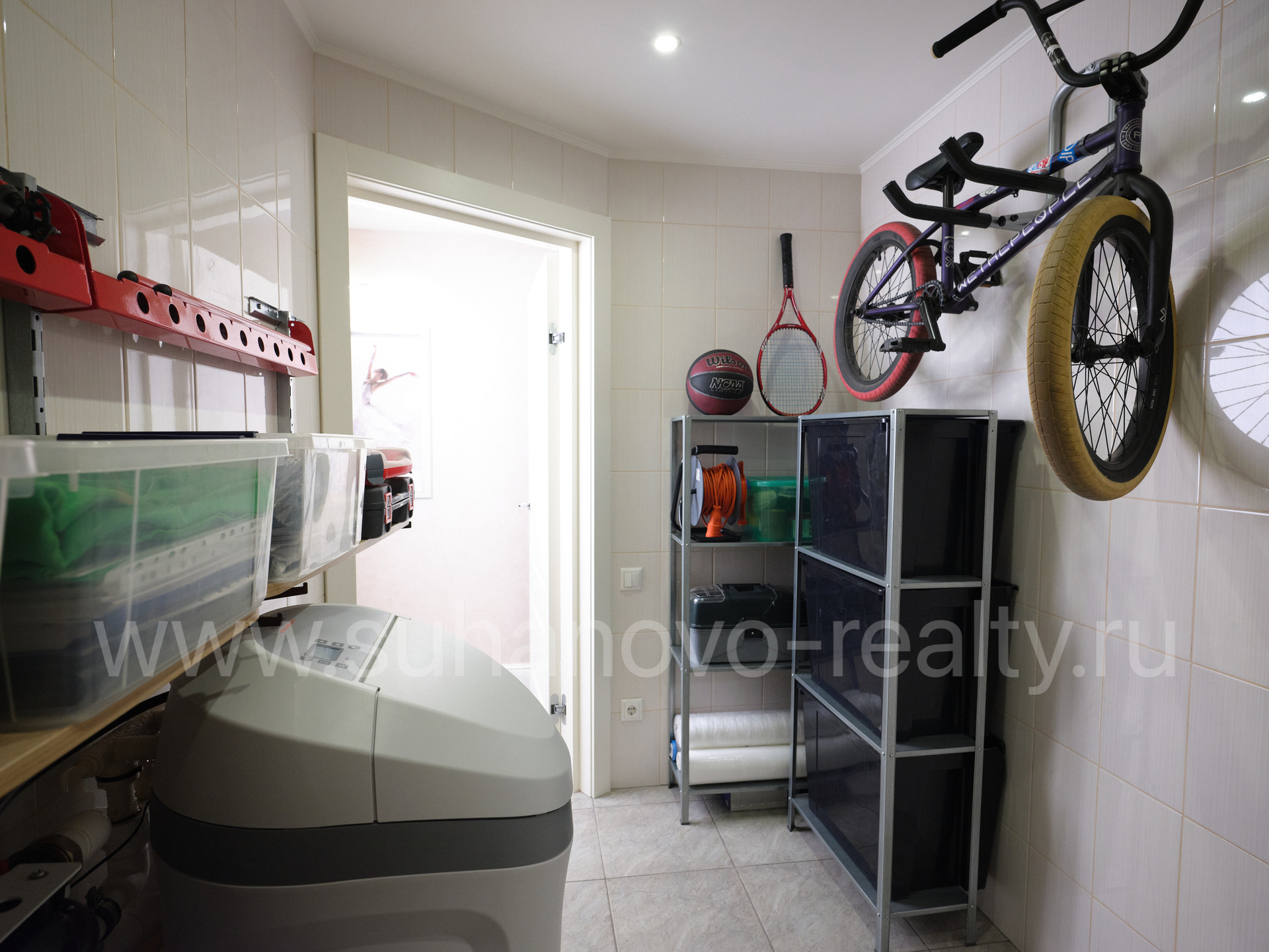 На 1 этаже расположены прихожая со встроенным шкафом (9,35 кв.м), гостевой санузел (2,2 кв.м) и совмещенная с кухней большая светлая гостиная (35 кв.м.) с панорамными французскими окнами, через которые осуществляется выход во внутренний дворик с зоной барбекю и зеленым газоном. На 2 этаже - просторная хозяйская спальня (17,5 кв.м.) с хорошей звукоизоляцией, санузел с ванной и душевой кабиной (6,8 кв.м.), а также кабинет (13 кв.м.) с выходом на балкон. На 3 этаже - две комнаты для детей/подростков (17 кв.м. каждая) и санузел (6 кв.м.). В цоколе устроены бойлерная (5 кв.м.) со стеллажами для хранения автомобильных шин, велосипедов и инструментов, постирочная (17 кв.м.) с большим встроенным шкафом, стиральной и сушильной машинами, раковиной, холодильником и морозильником, а также кинотеатр/фотостудия (23 кв.м.) с хорошей звукоизоляцией и всеми необходимыми выводами под оборудование и интернет.