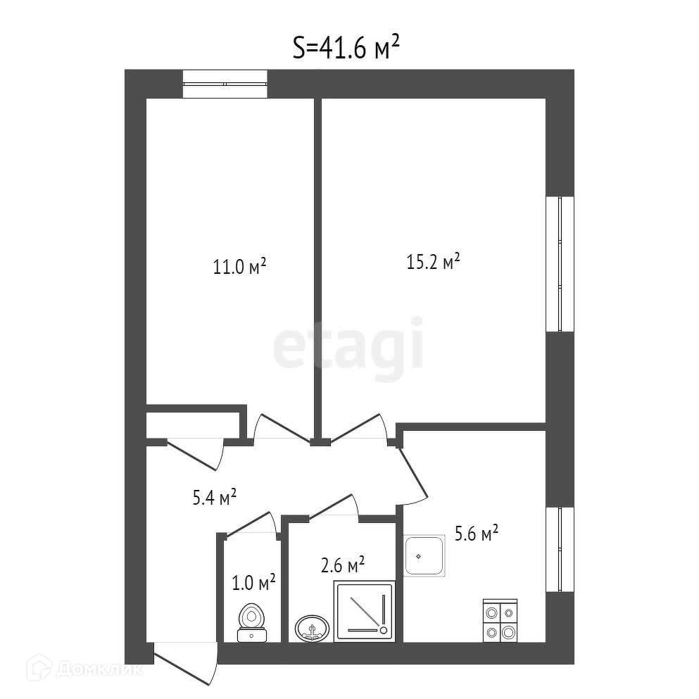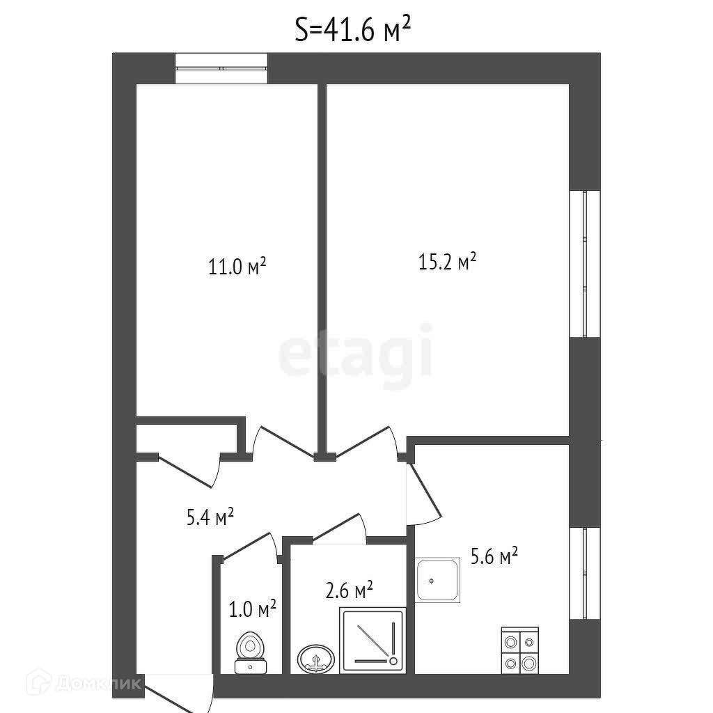 Общая площадь 41.6 м2