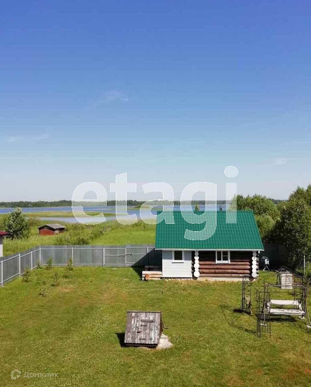Участок ровный, прямоугольной формы, площадью 9,8 соток, находится на первой береговой линии Зауломского озера, обнесен с трех сторон забором из профлиста , от соседей сетка рабица. На участке находится двухэтажный рубленный дом из оцилиндрованного бревна, общей площадью 110 кв.м.На первом этаже 2 комнаты, холл, с\узел, на втором холл и 2 спальни.