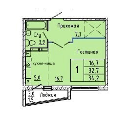 Общая площадь 32.7 м2