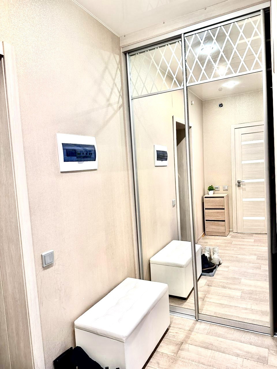 В квартире выполнен качественный ремонт. Планировка и меблировка продумана до мелочей, для удобства проживания сделана вместительная гардеробная.