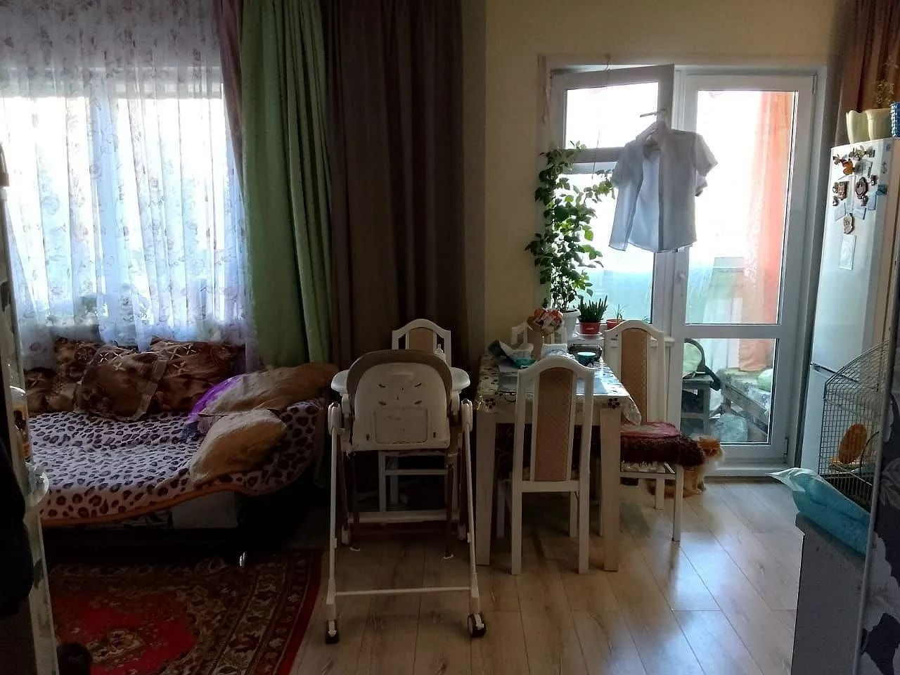 Квартира с балконом. Гостиная с кухонным блоком + спальня 9 кв.м. Квартира с хорошим ремонтом.