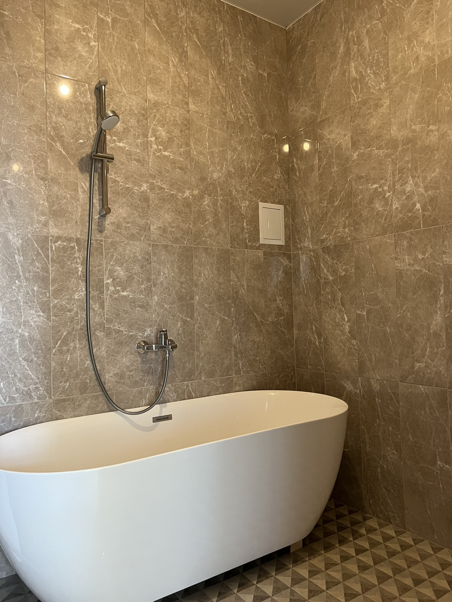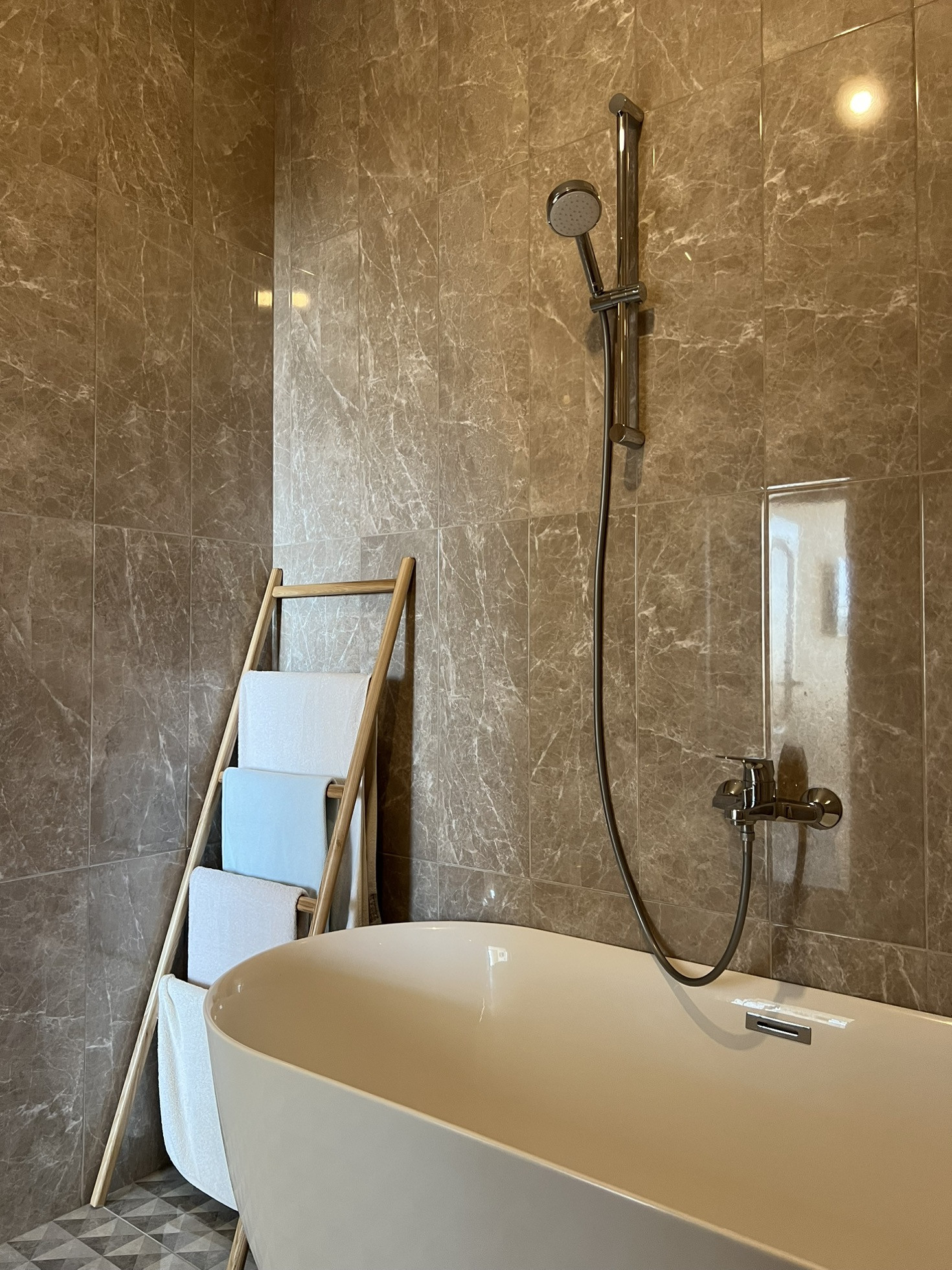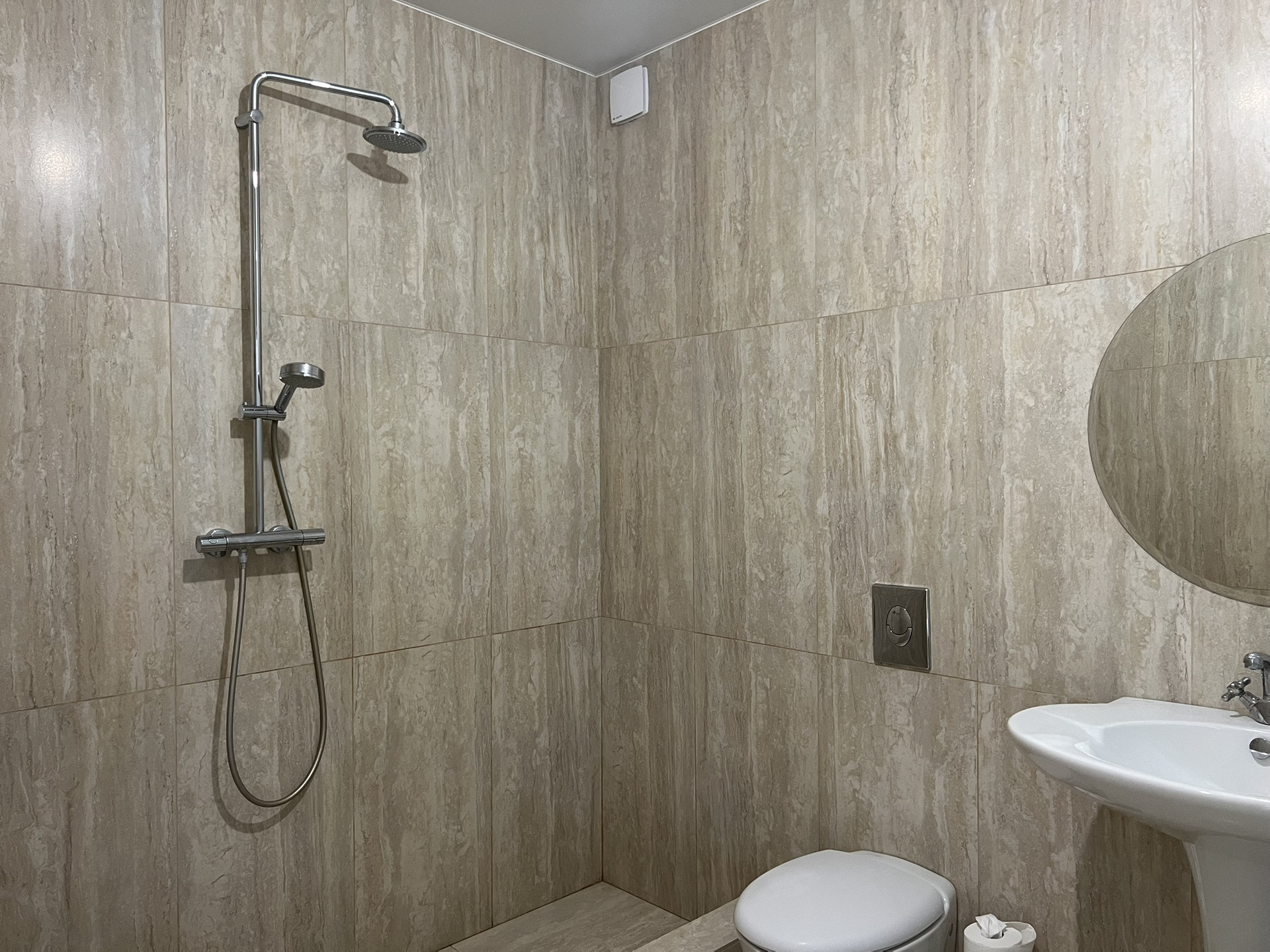 На третьем этаже две изолированные спальни и второй санузел, оборудованный ванной, в первом санузле душевая зона.