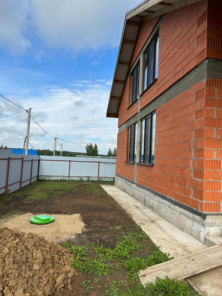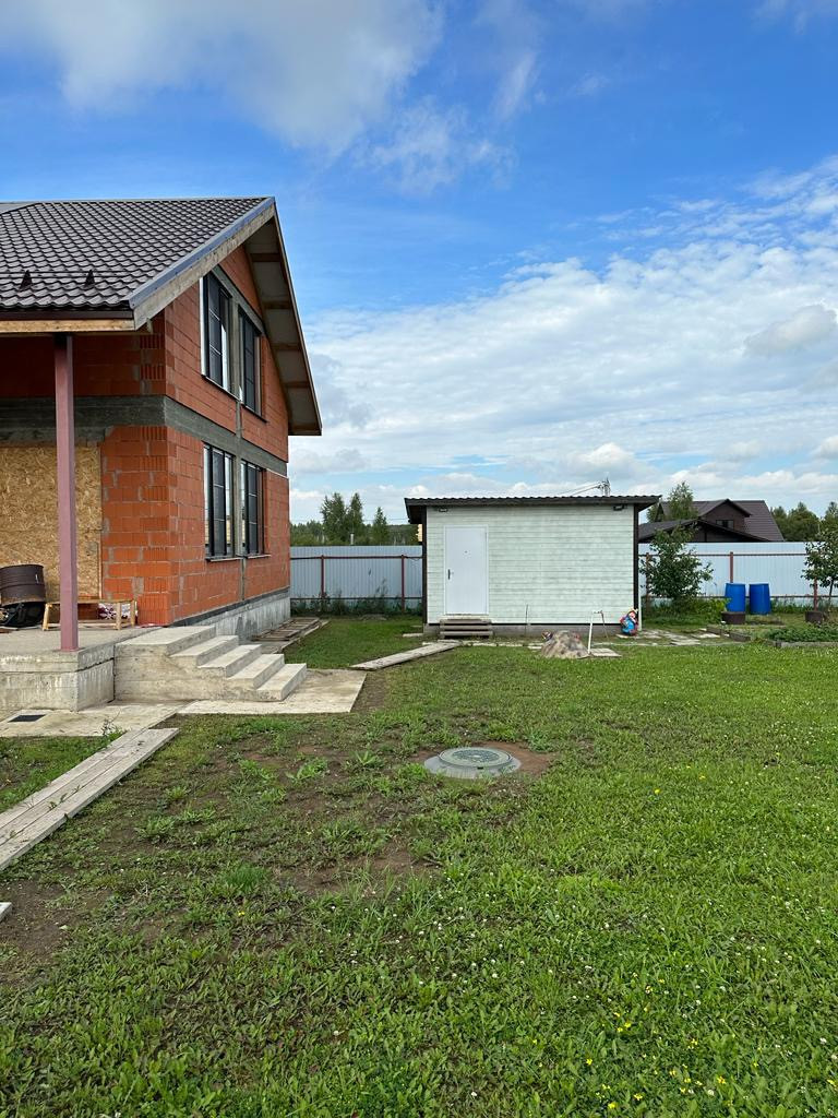 Продается дом на участке 10 соток. Собственник 1 человек. Дом построен в прошлом году. Участок в собственности более 5 лет. Решили не продолжать отделку в связи с тем, что и так живем за городом. Все документы и чеки на строительство есть. Электричество и вода (скважина) заведены в дом. Канализация - септик.
