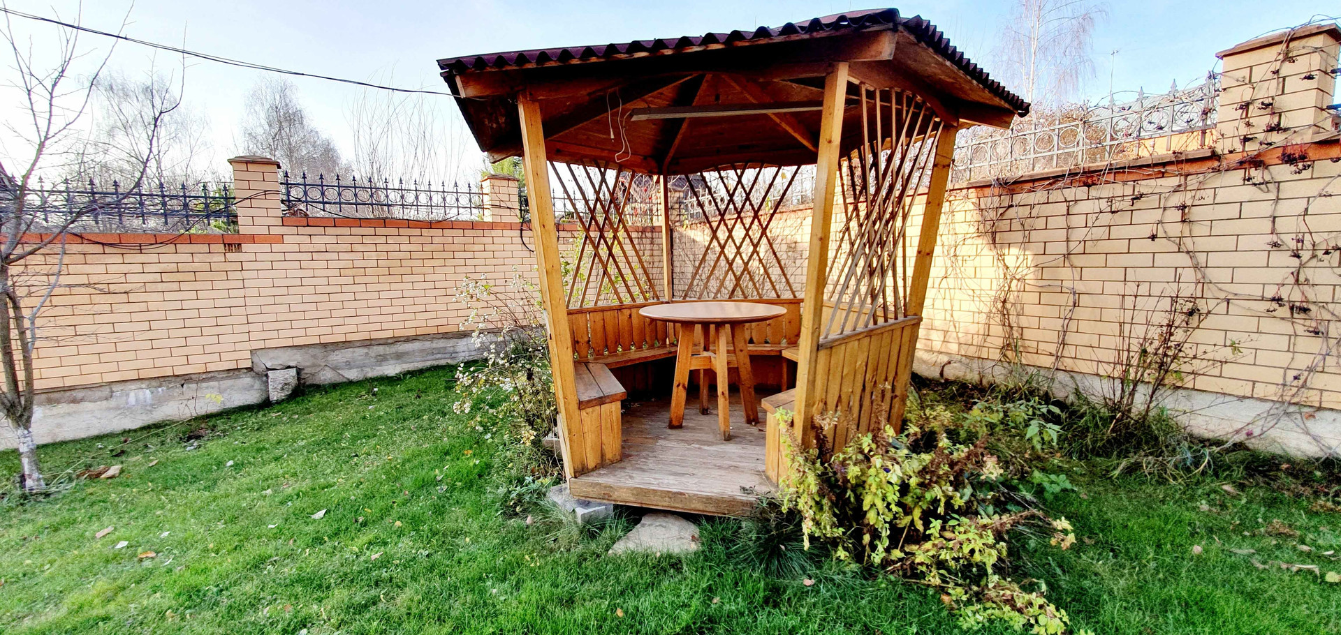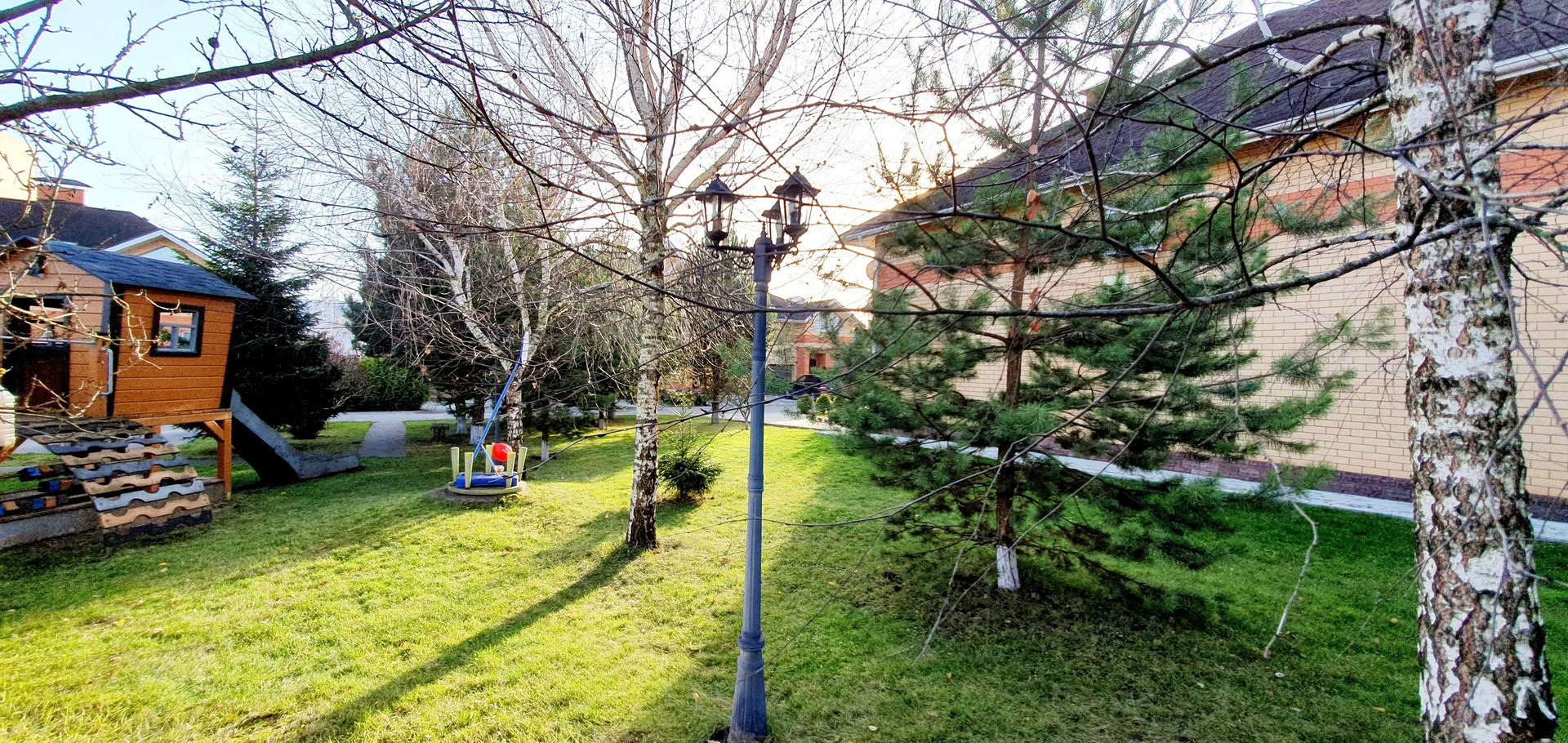 Закрытая ухоженная территория на несколько домовладений с автоворотами, детской площадкой и приятными соседями.