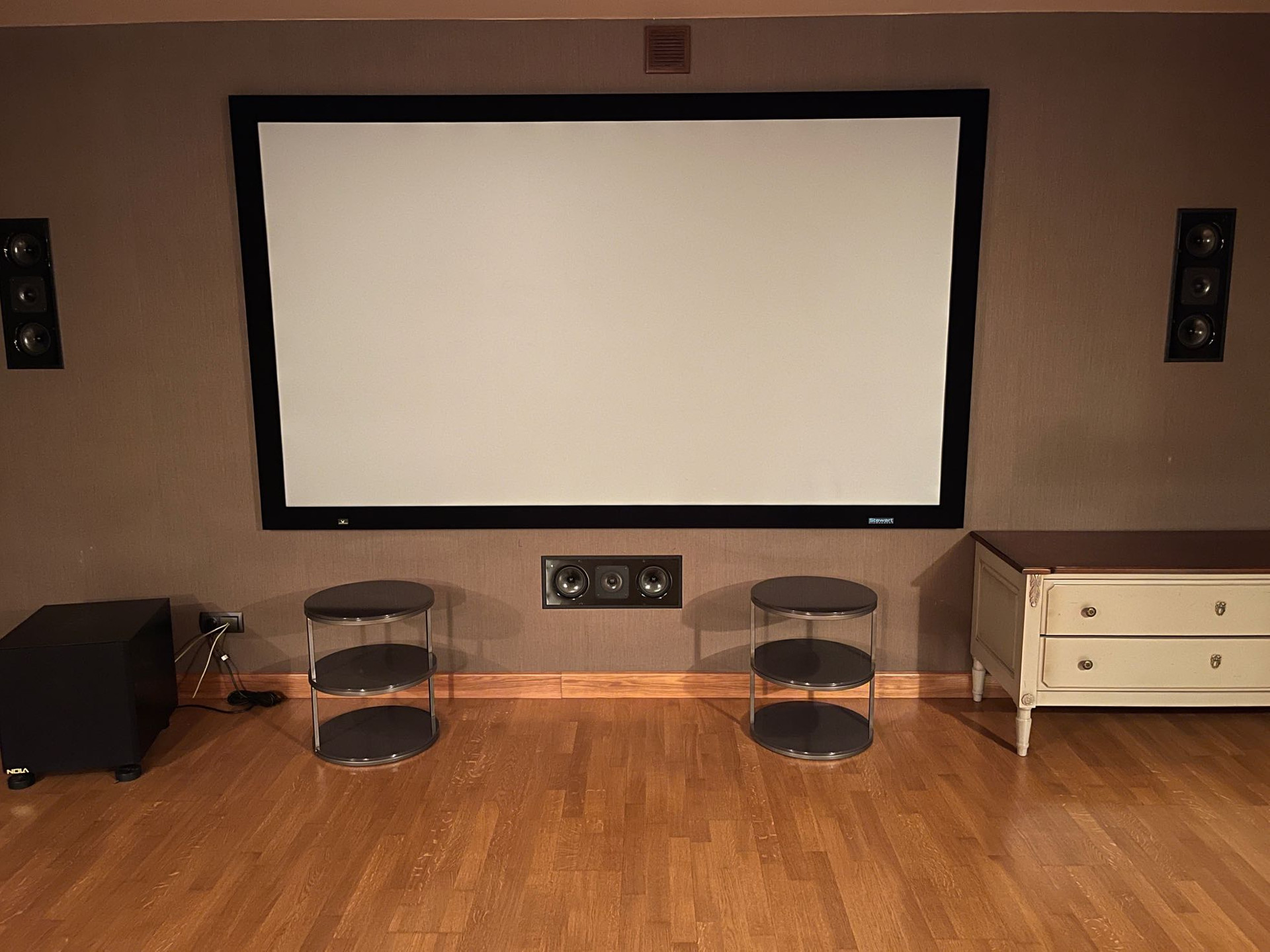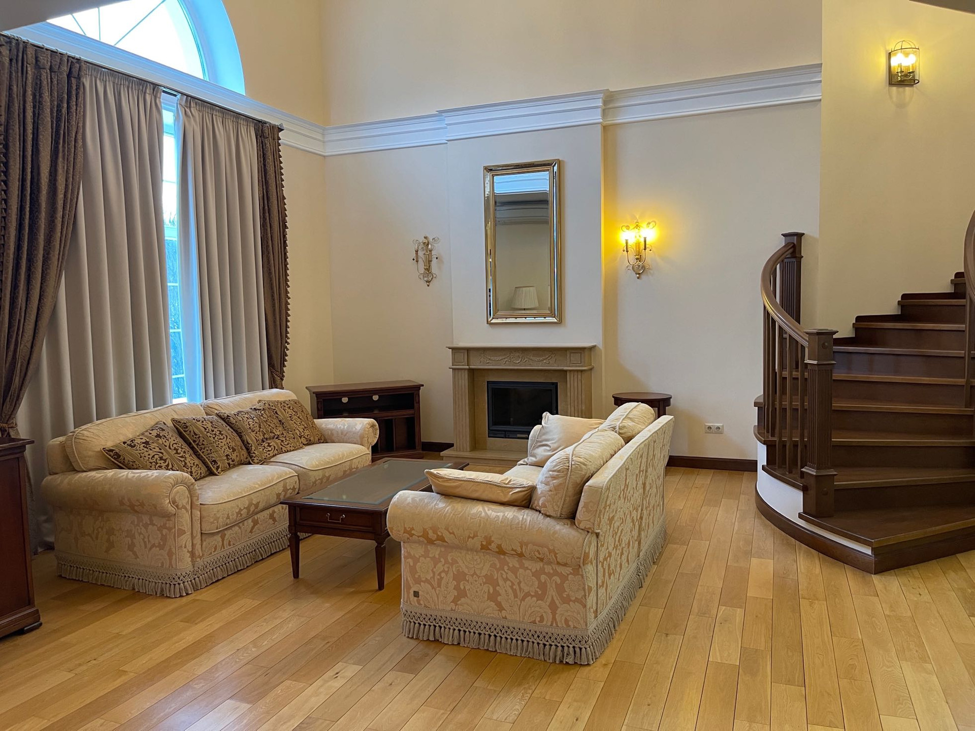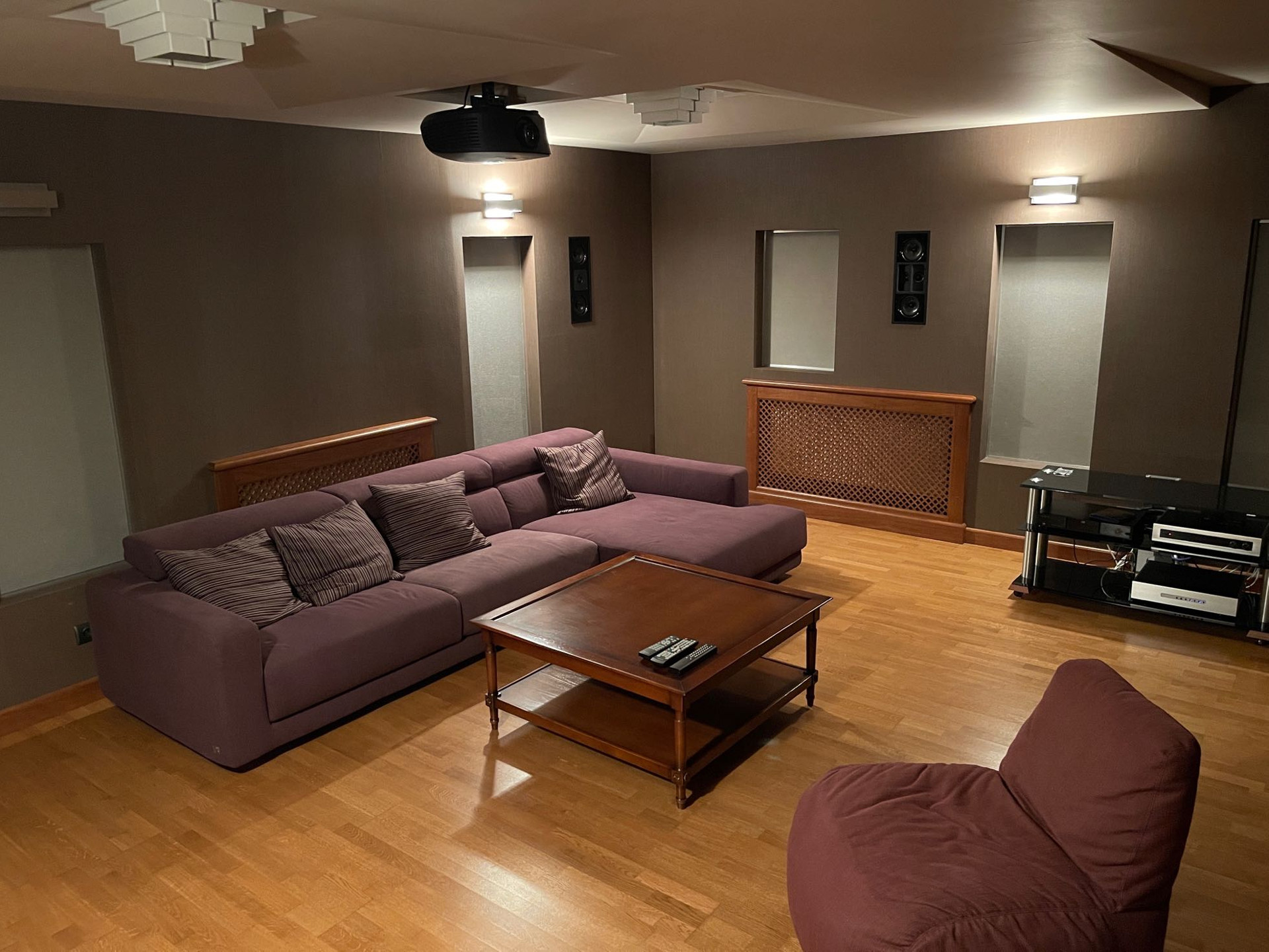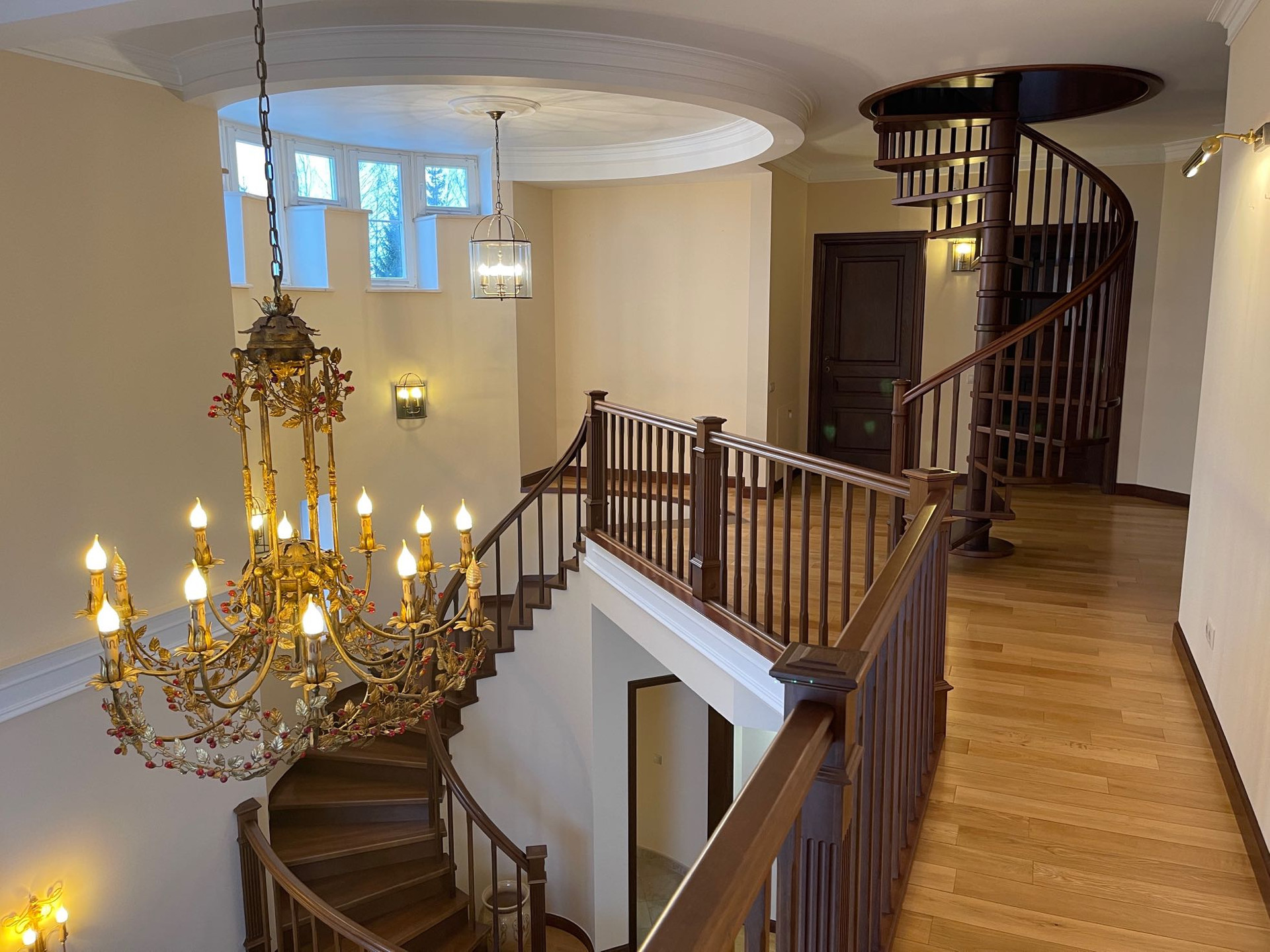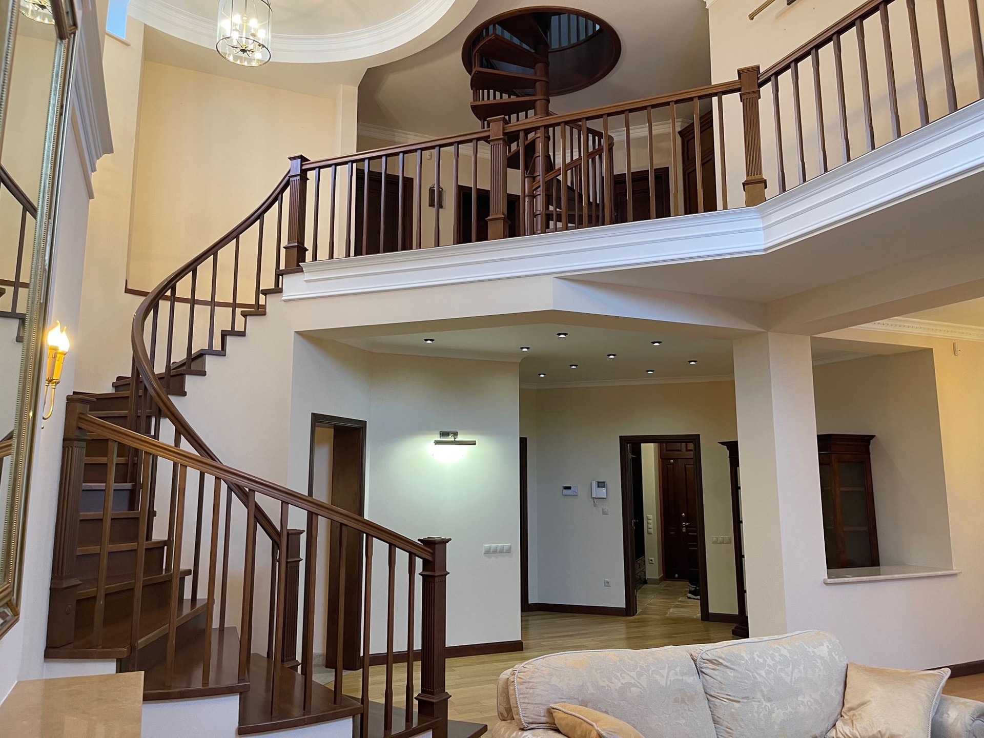 Цокольный этаж: кинозал, котельная, винный погреб, санузел, большая гардеробная.