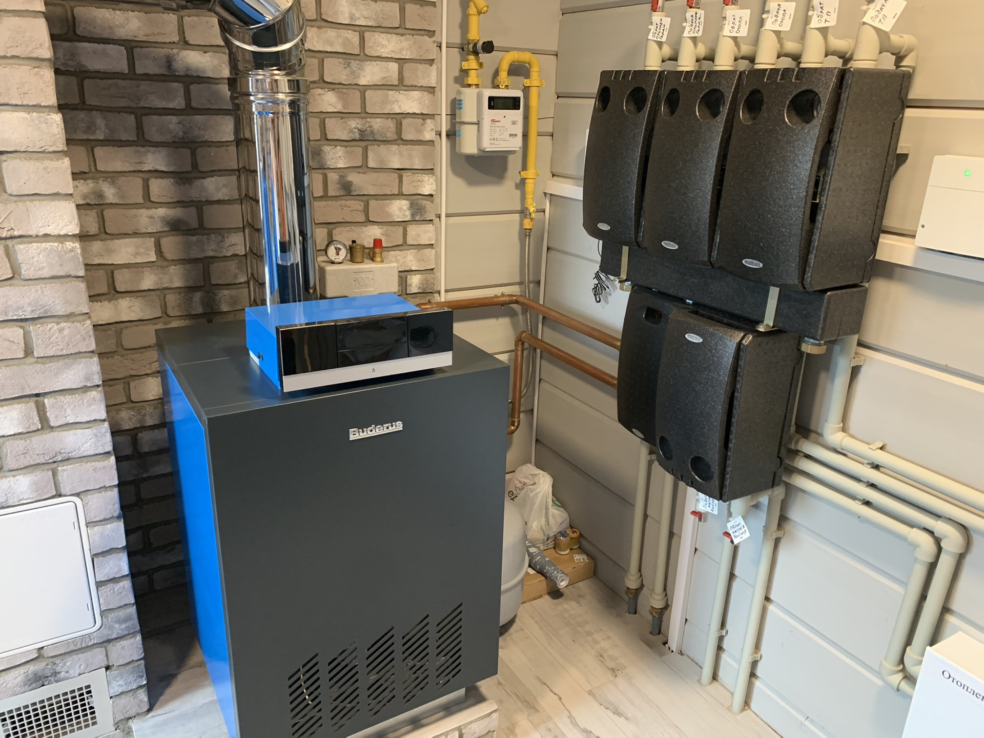 Коммуникации: электричество 30 кВт, газ магистральный, водопровод из артезианской скважины, два септика Топаз, дренаж, видеонаблюдение по периметру и в доме, оптиковолоконный интернет, охранная система DELTA с управлением с телефона, котёл Buderus с управлением с приложения, обогрев кровли, окна SCHUCO.