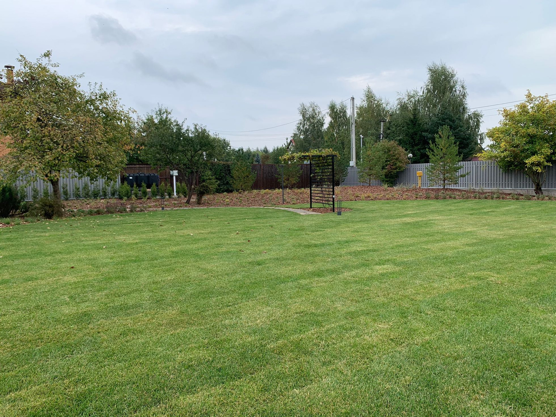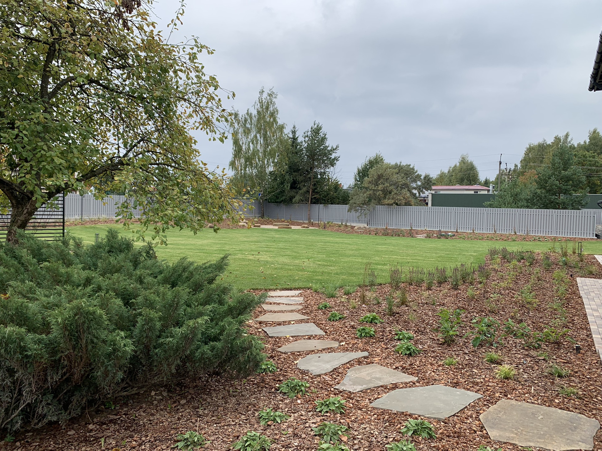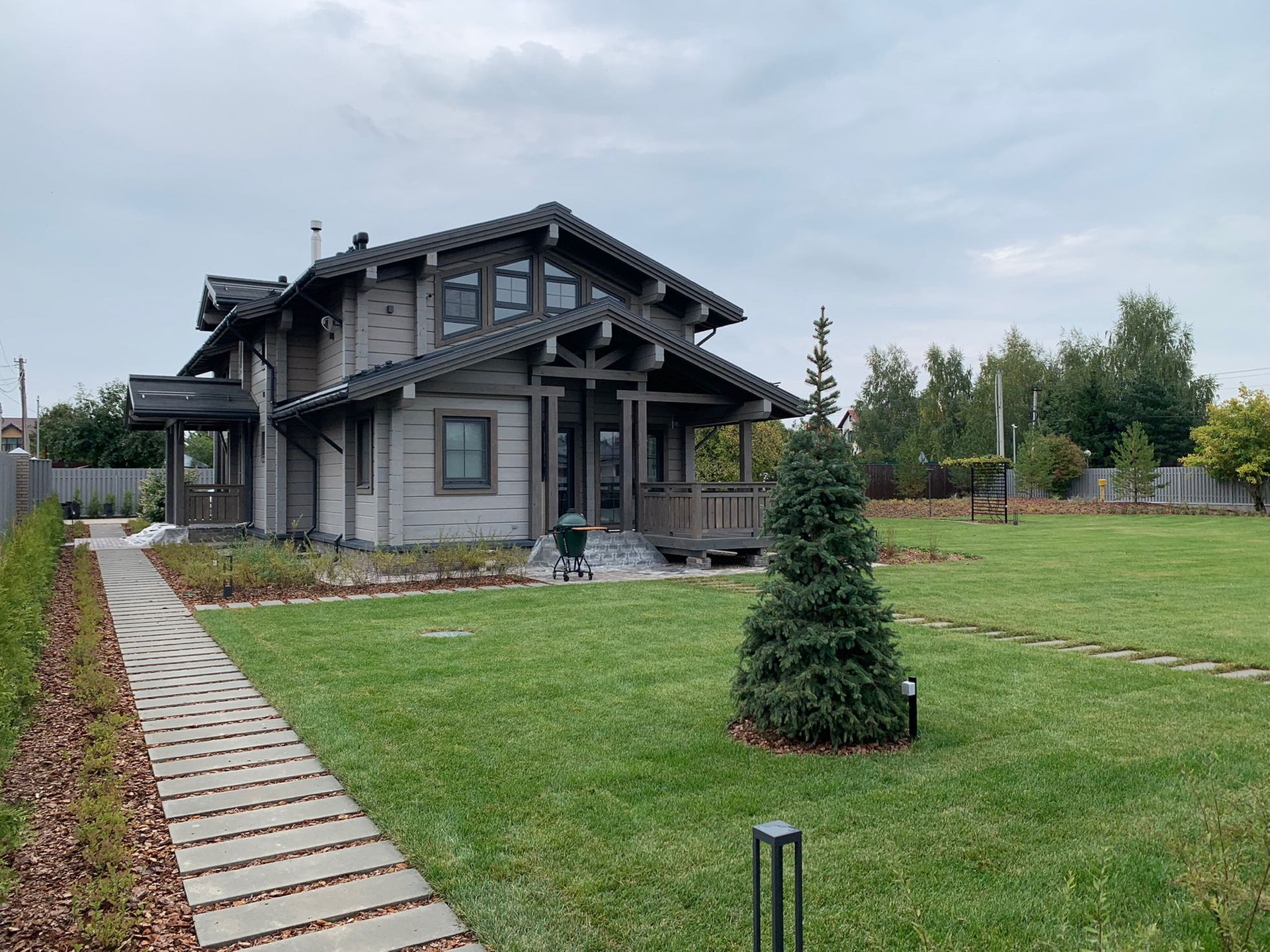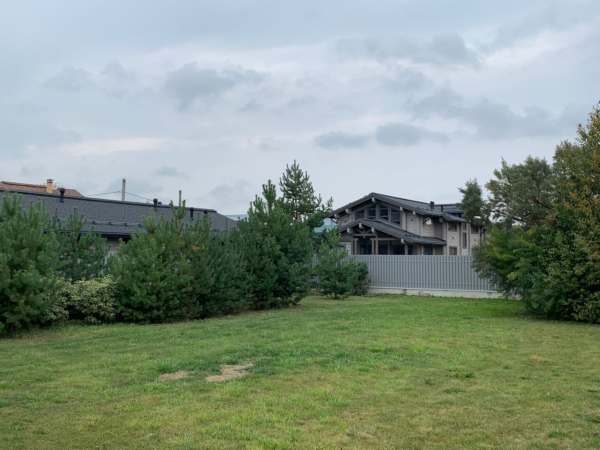 Участок правильной формы ИЖС 24 сотки. Сделан ландшафтный дизайн, дорожки, полив, газон, освещение, зона с костровищем. Высажены туи, клены, декоративные растения и травы, сосны.