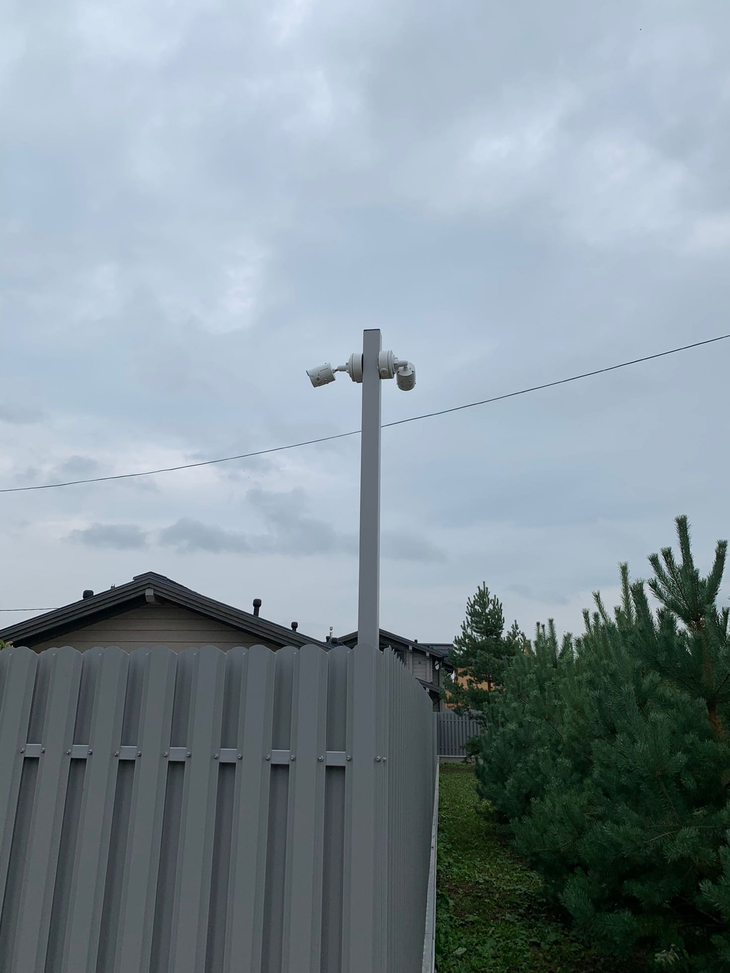 Забор по всему периметру, два въезда, парковка на 2 автомобиля.