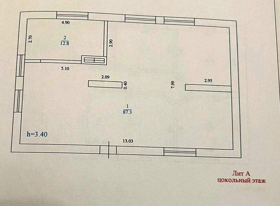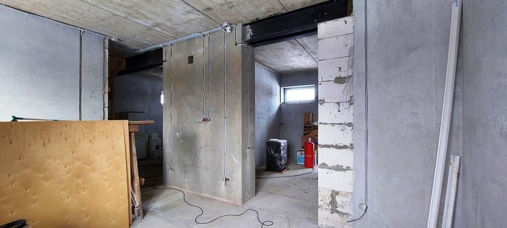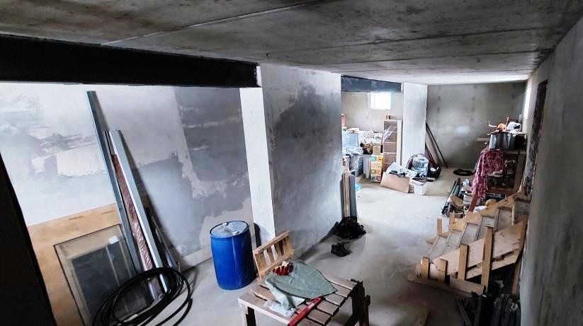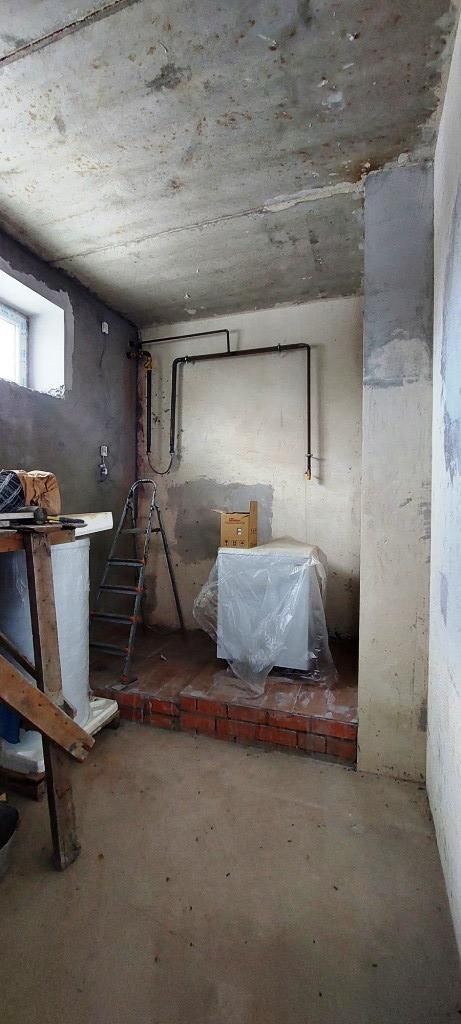 Просторный цокольный этаж - выполнен черновой ремонт, залита бетонная лестница, установлен газовый котел.