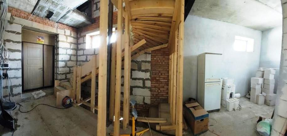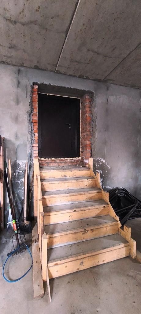 Между 1-м и 2-м этажом залита бетонная лестница.