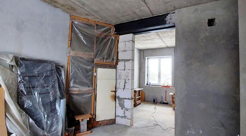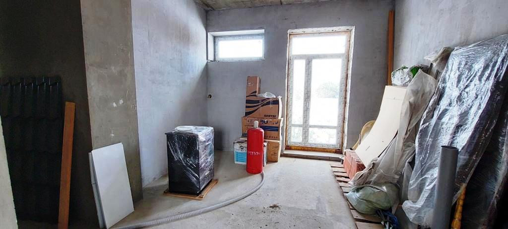 1й этаж- 140м2.Три комнаты и кухня. Выполнен черновой ремонт. Возведены и отштукатурены стены, разведена вся электрика. Уставлены двери с терморазрывом, пластиковые окна с двойным стеклопакетом.