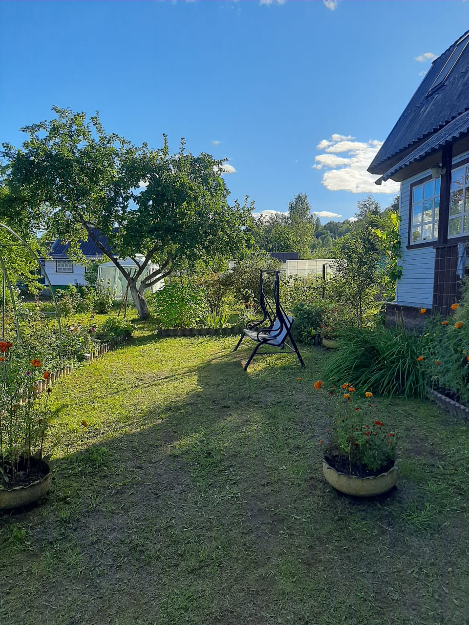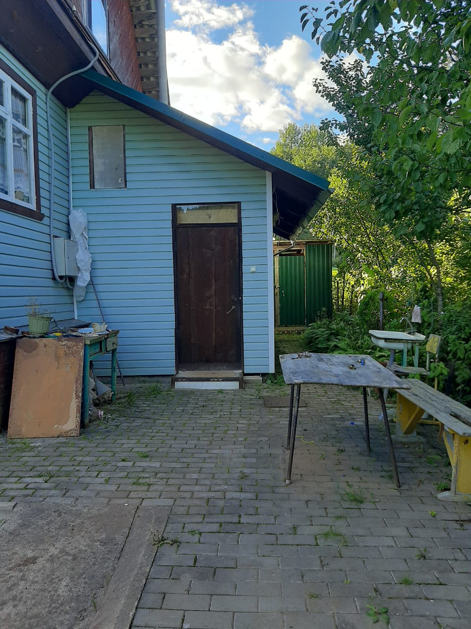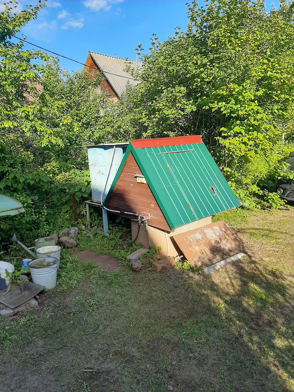 На участке есть дровенник, сарай и колодец. Вода с колодца проведена в дом. Участок разработан под огород. Есть яблони, вишни, виноград, смородина, крыжовник. Так же есть две теплицы поликарбонат.
