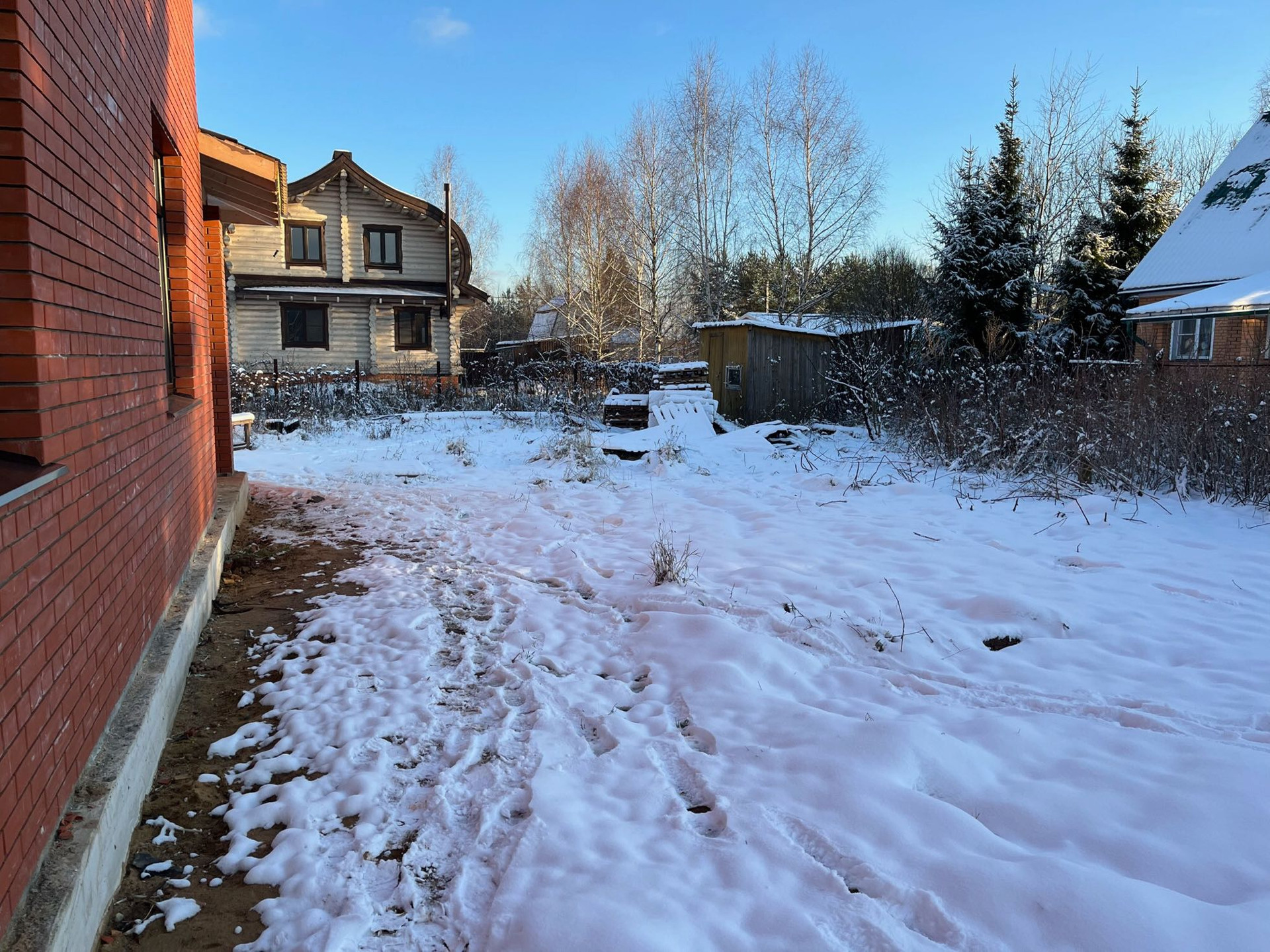 На участке есть скважина, электричество и хоз. блок.