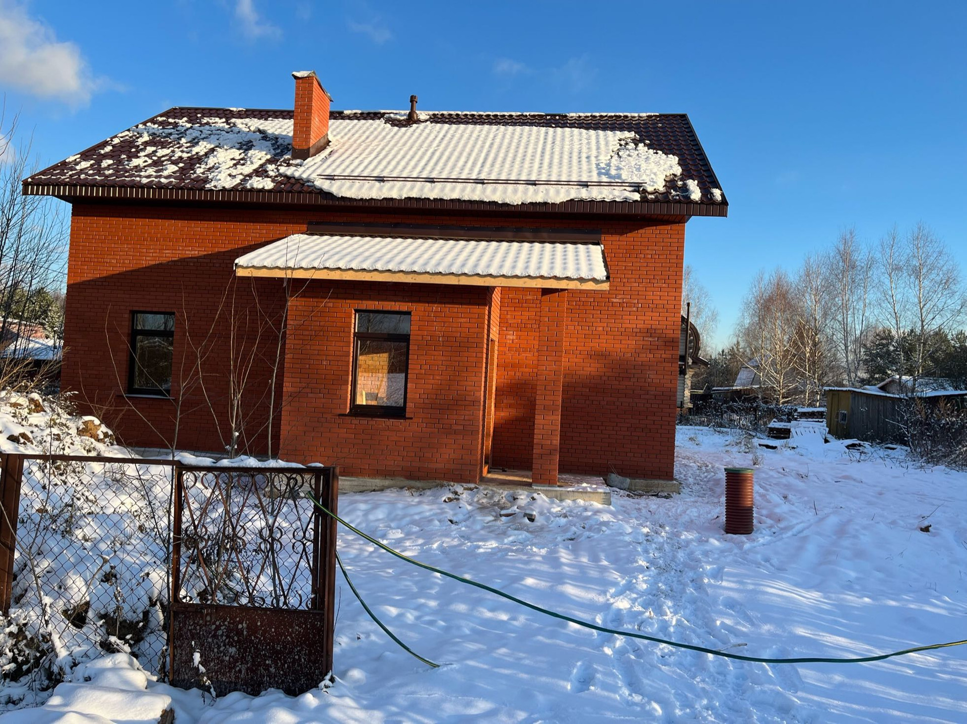 На участке расположен одноэтажный кирпичный дом с полноценным мансардным этажом. Дом выполнен по индивидуальному проекту.