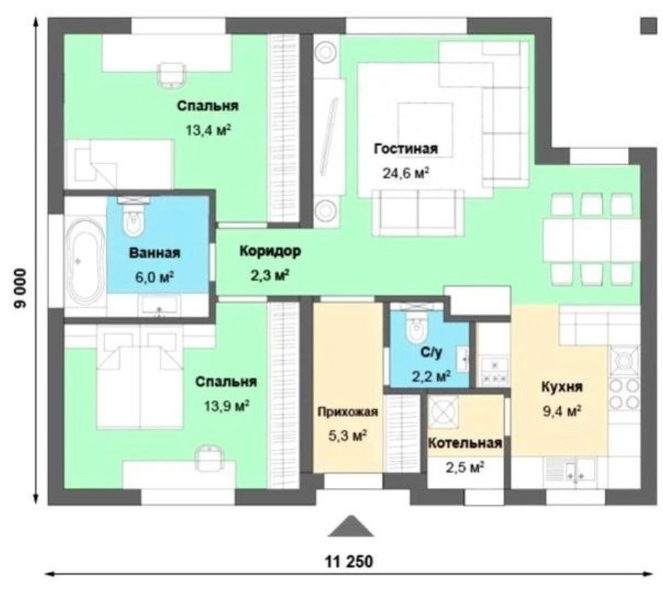 Общая площадь 80 м2