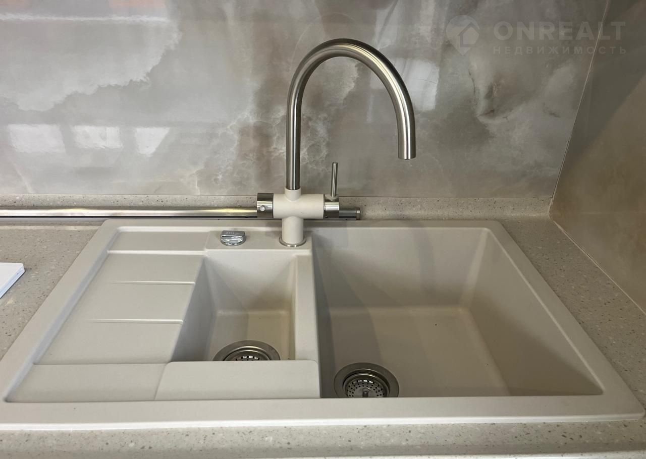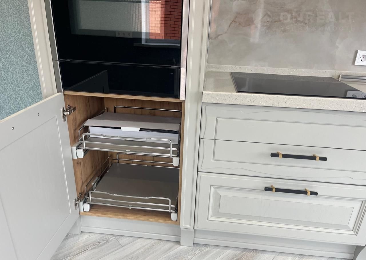 - кухня – настоящее произведение искусства от фирмы «Мария», модель Воrgо с фасадами из Италии, покрытыми эмалью, и комплектующими НЕТТIСН. Столешница из искусственного камня, мойка гранит, смеситель 2в1 Сristаlitе сталь;