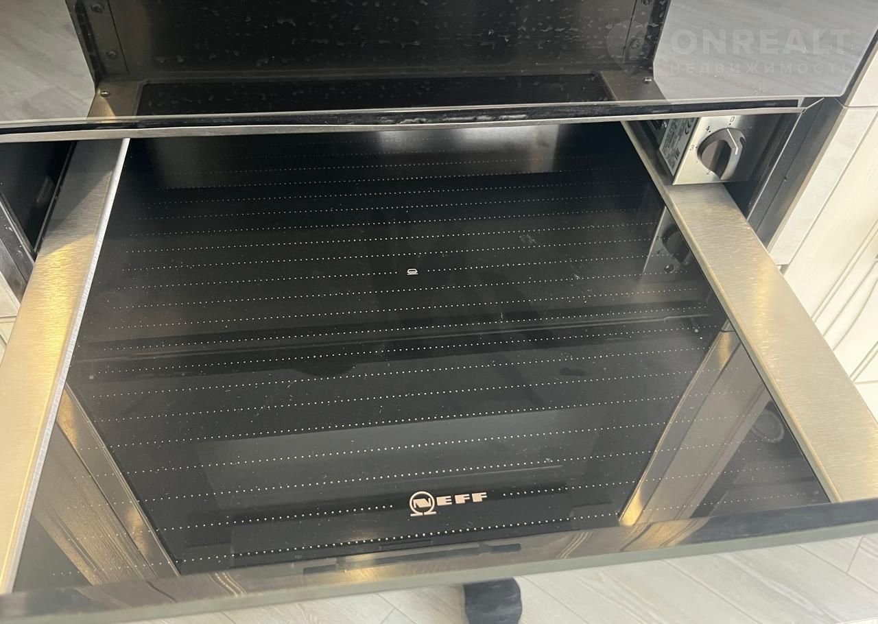 - встроенная в кухню ВСЯ бытовая техника премиального бренда фирмы «NЕFF»: варочная панель индукционная, шкаф для подогрева посуды и компактный духовой шкаф, посудомоечная машина. Поистине, здесь есть все для воплощения в жизнь любых кулинарных шедевров.