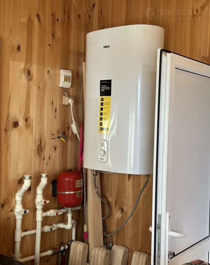 • В бане проведено отопление и вода, установлен водонагреватель и дровяная печь (отдельный септик).