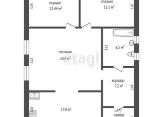 Общая площадь: 75.4 м2