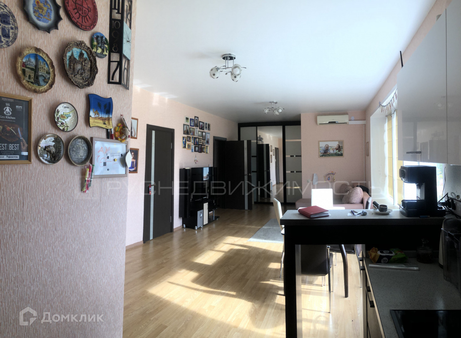 просторную гостиную с выделенной зоной кухни  (29,3 м2)