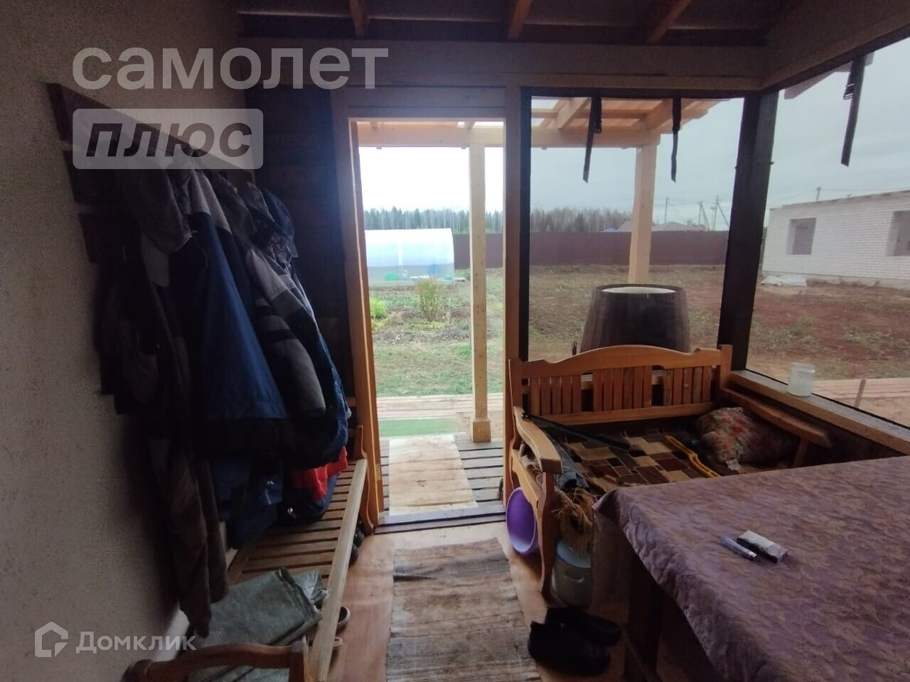 На участке есть каркасный дом, пригодный для круглогодичного проживания, отопление, вода, с/у, электричество.