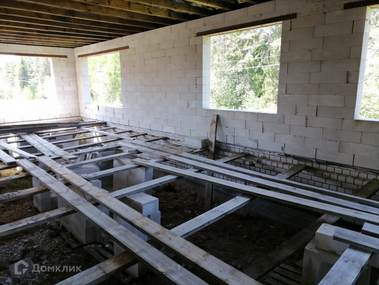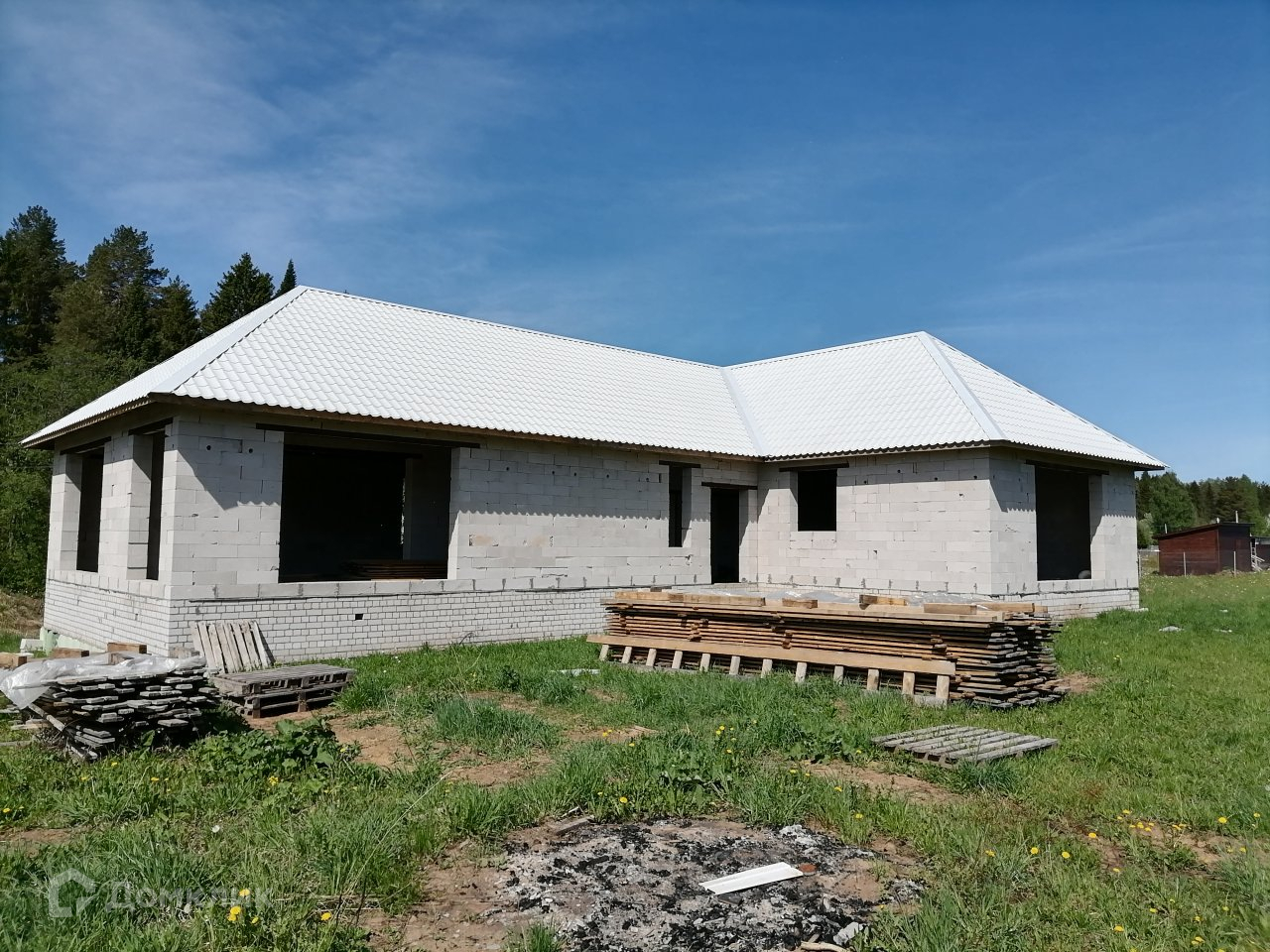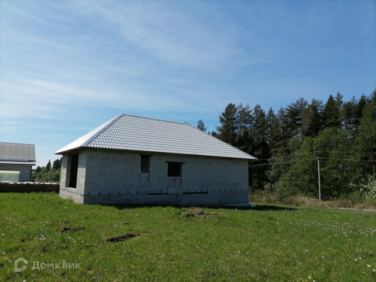 Дом построен из газоблоков. По проекту 3 комнаты, просторная кухня-гостинная, 2 санузла. Панорамные окна 3,2*2,4 метра. Закладная фундамент под камин. Газ, электричество, скважина, сарай. Подъезд круглый год. Расстояние от города всего 12 км, отличное расположение, недалеко река, совсем рядом лес. Чистый воздух и вода, рыбалка, ягоды, грибы.