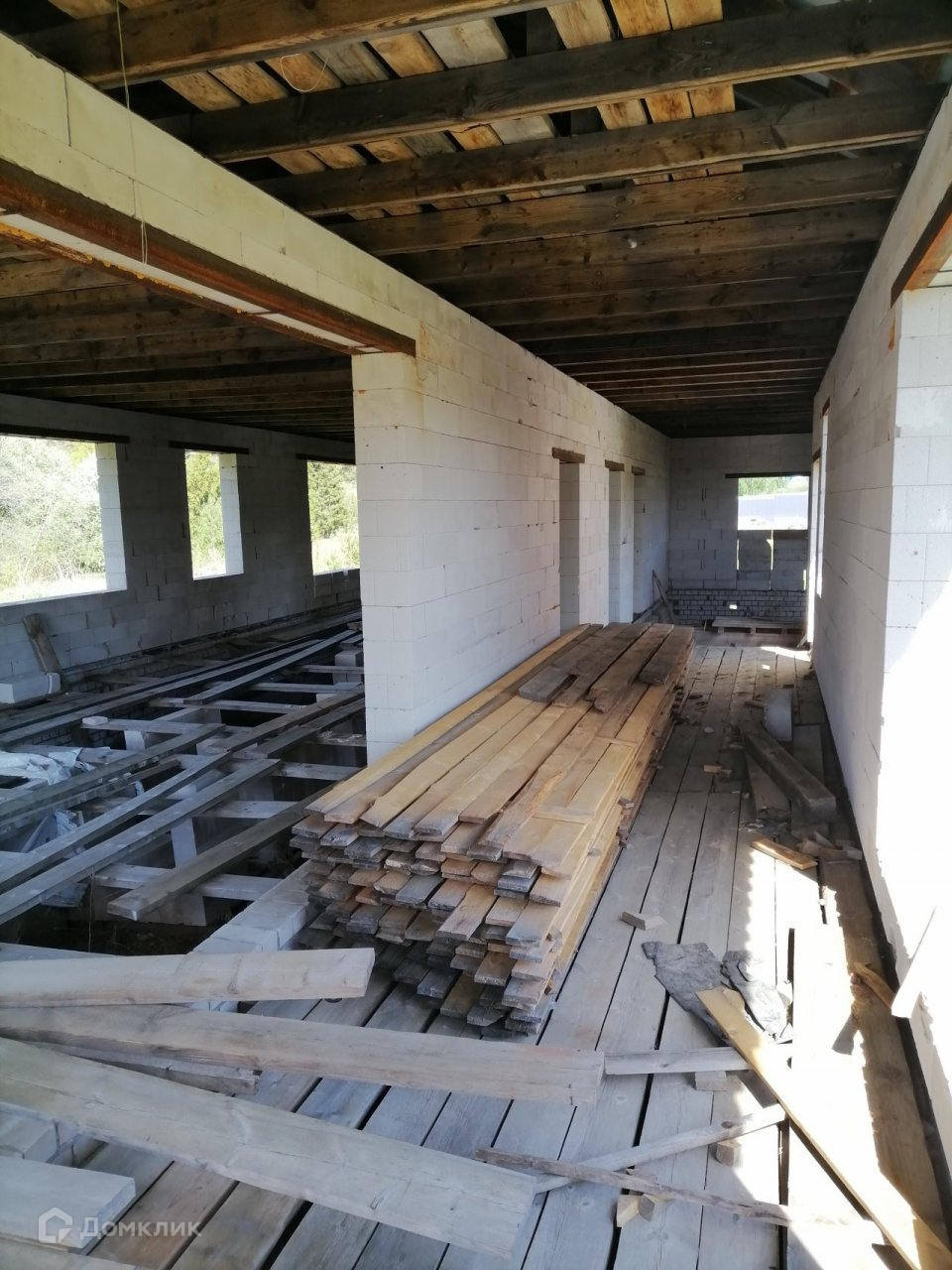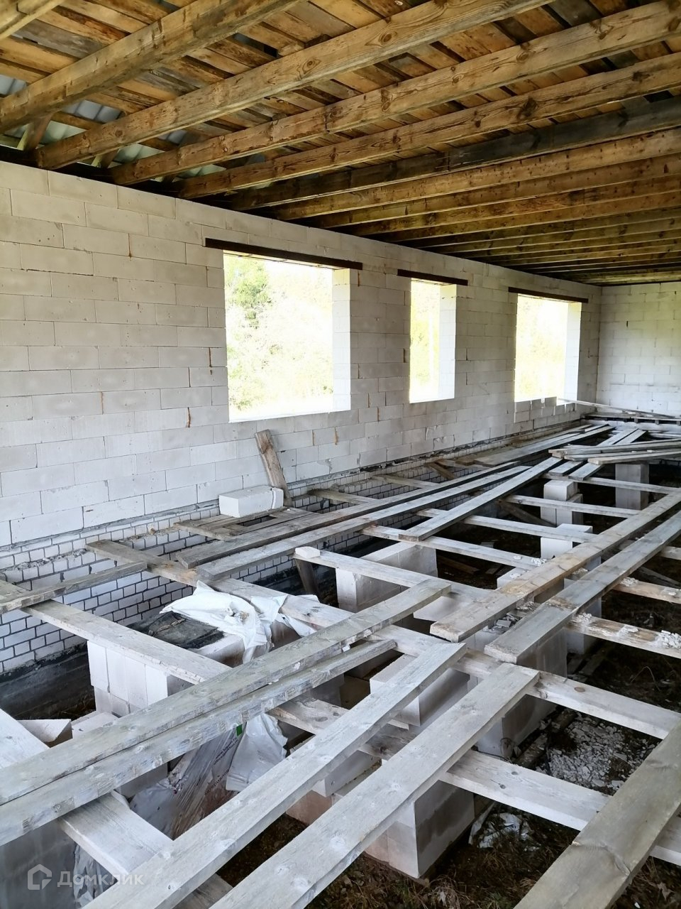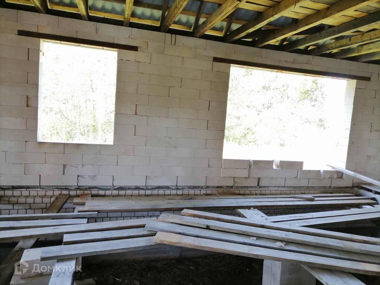 Дом построен из газоблоков. По проекту 3 комнаты, просторная кухня-гостинная, 2 санузла. Панорамные окна 3,2*2,4 метра. Закладная фундамент под камин. Газ, электричество, скважина, сарай. Подъезд круглый год. Расстояние от города всего 12 км, отличное расположение, недалеко река, совсем рядом лес. Чистый воздух и вода, рыбалка, ягоды, грибы.