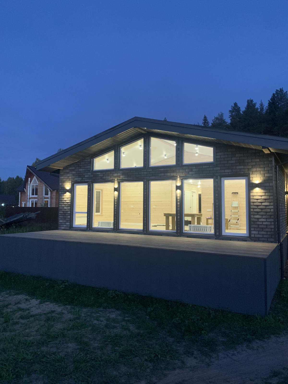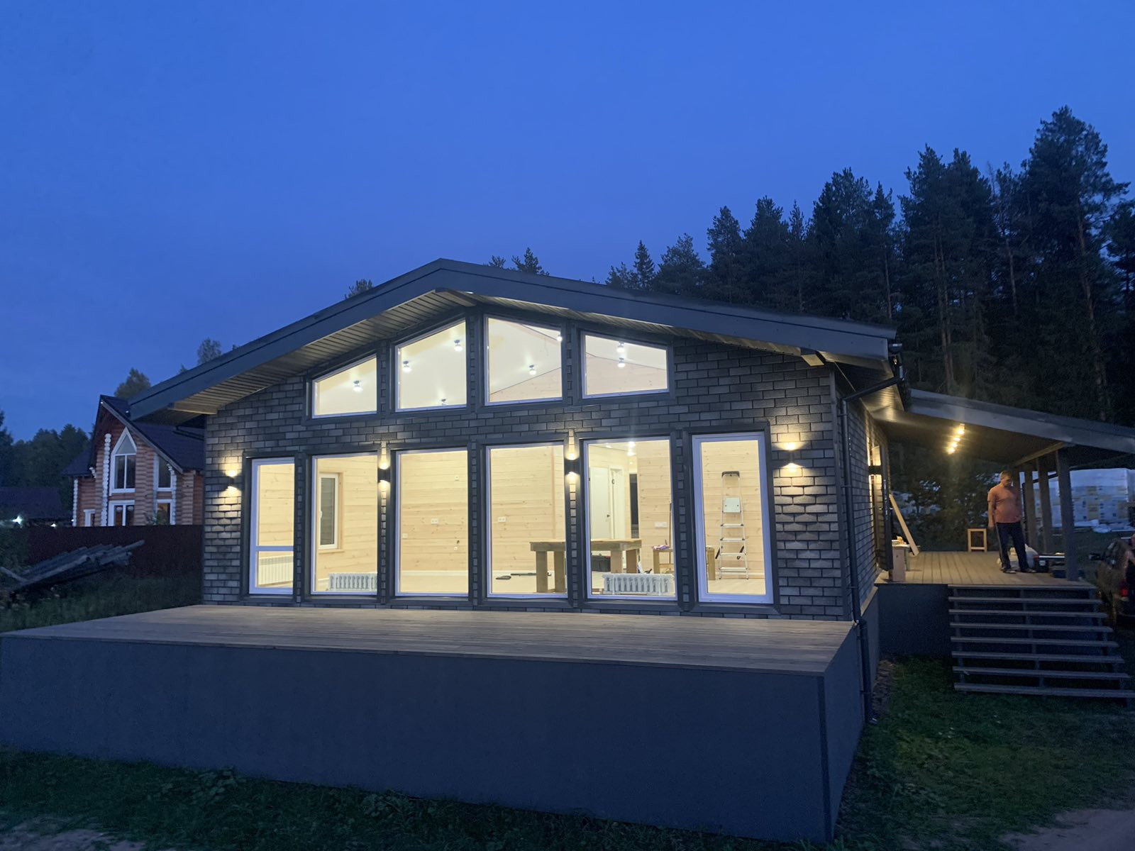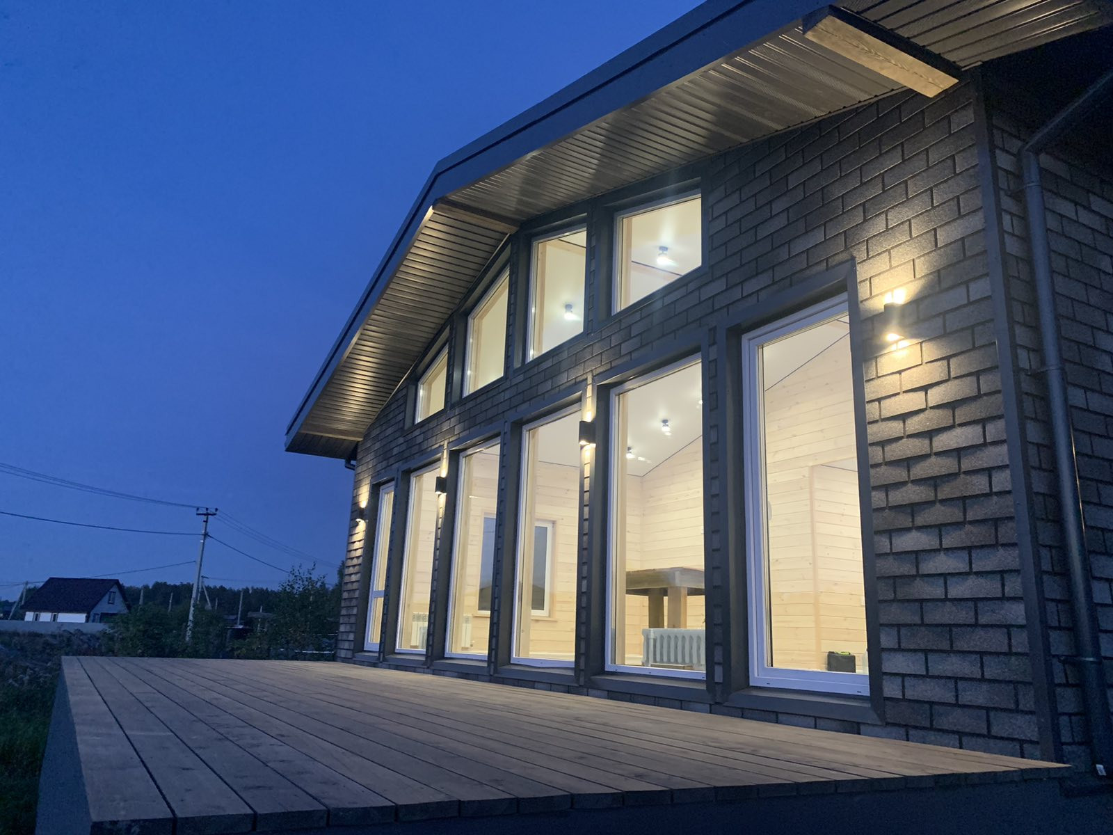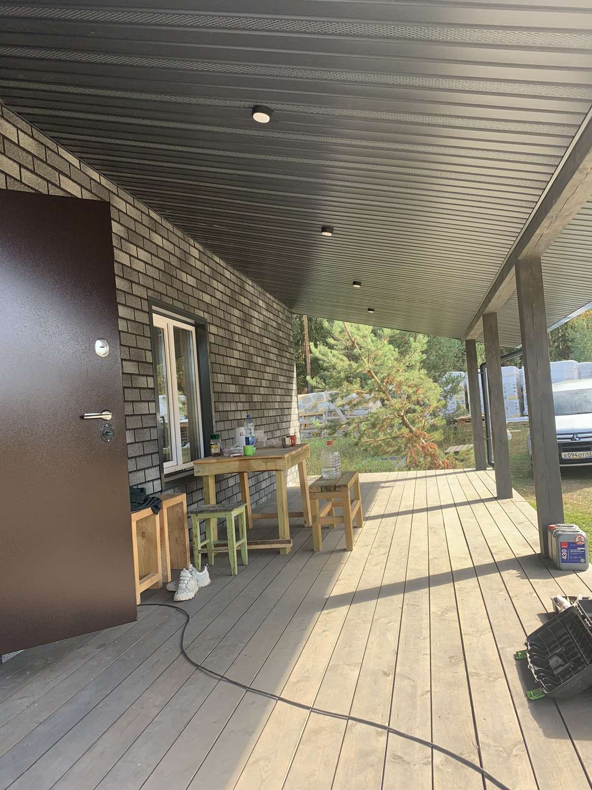 •Уличное освещение на фасаде дома и веранде .