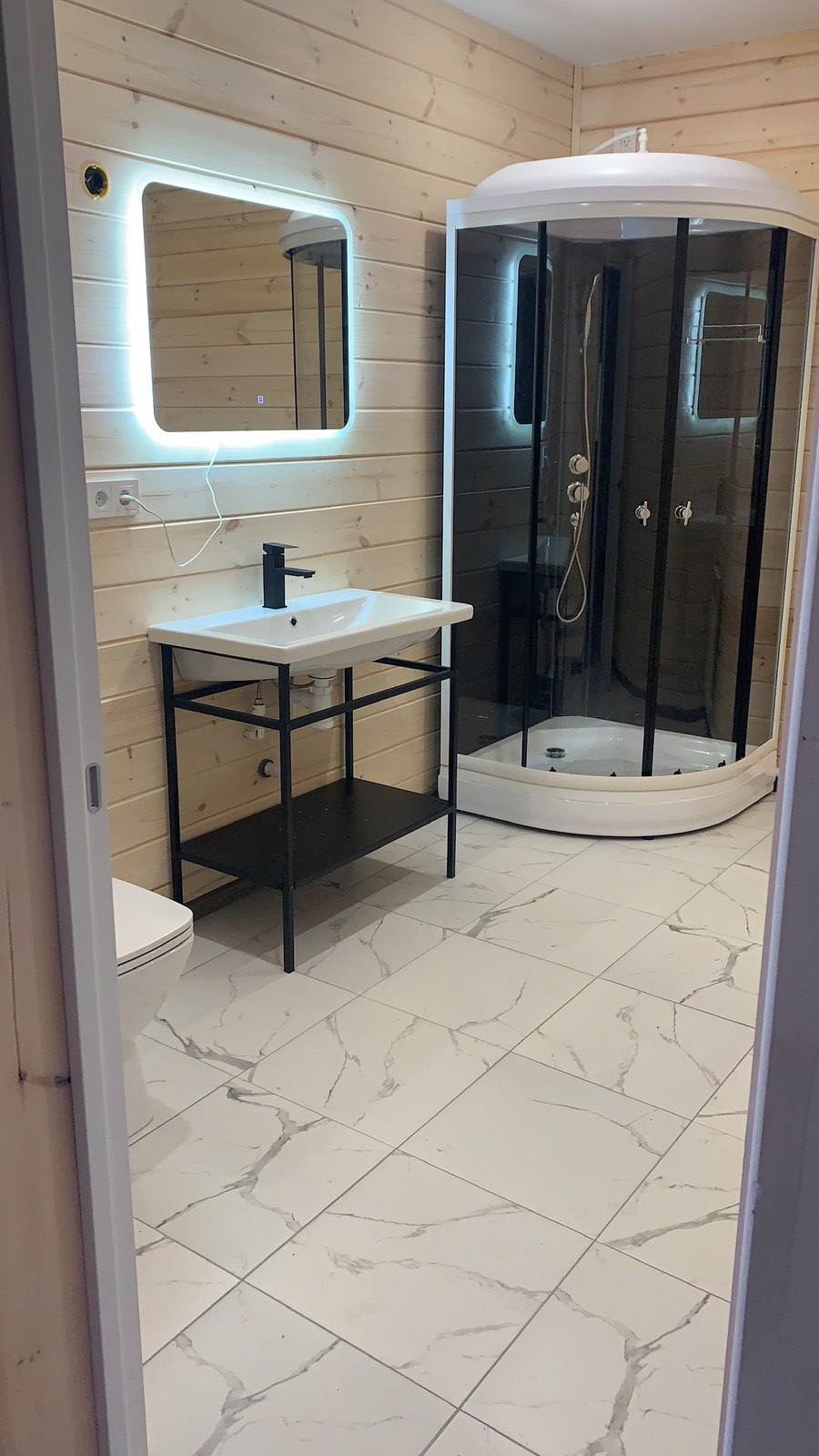 САНУЗЕЛ полностью скомплектован: душевая кабина, унитаз, раковина, качественная сантехника,зеркало с подсветкой